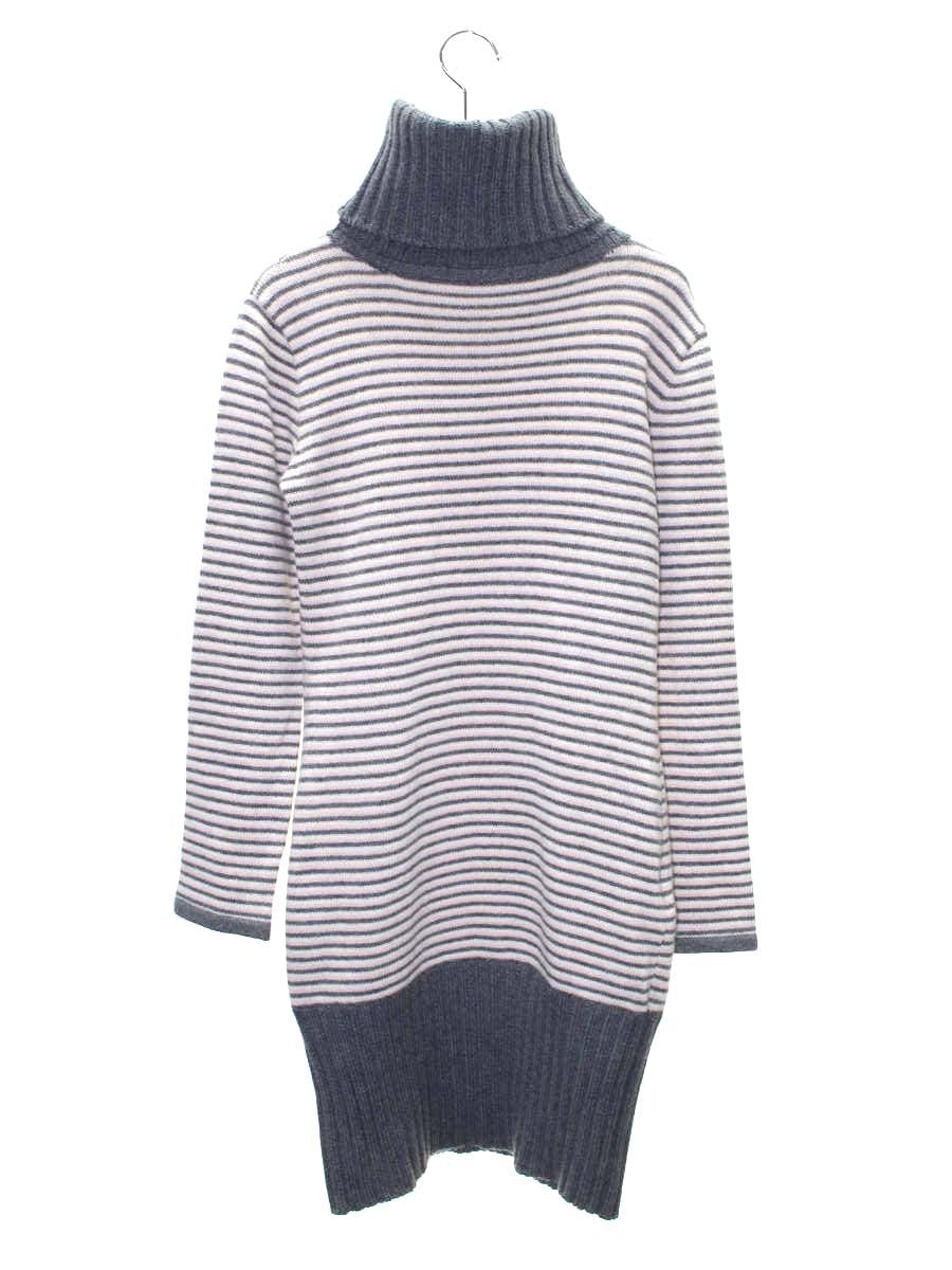ルネ ニットワンピース 36 グレー ボーダー タートルネック カシミヤ ITEV9PD3ARMY
