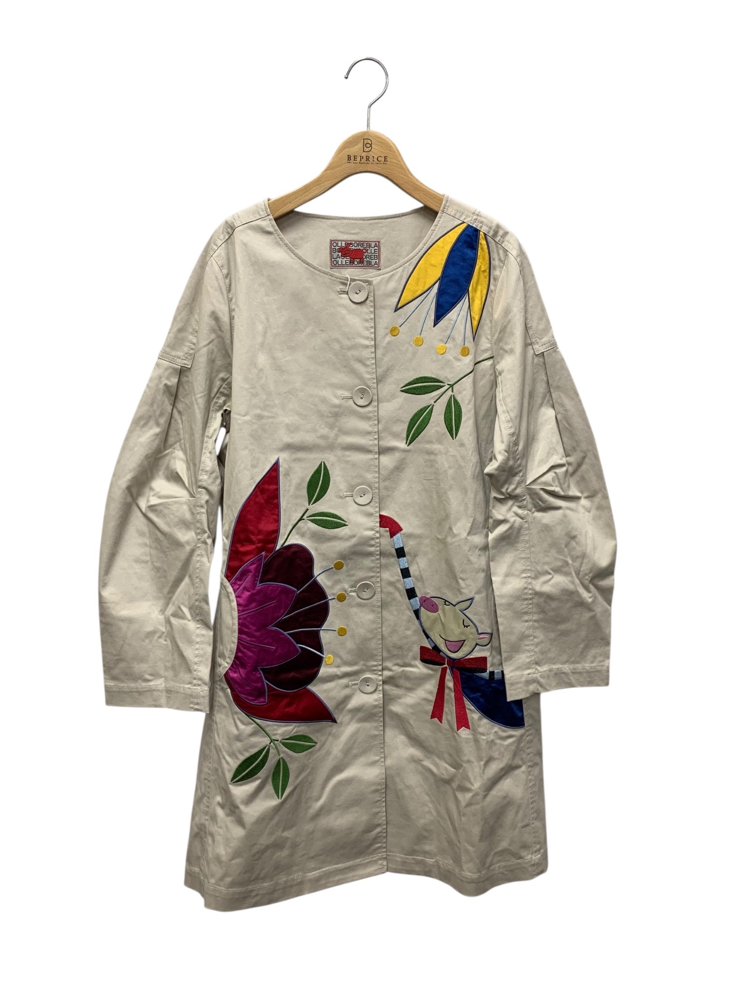 アルベロベロ 713823 コート F ベージュ ノーカラー ぶたさん フラワーモチーフ ITG2WN5EGSYO