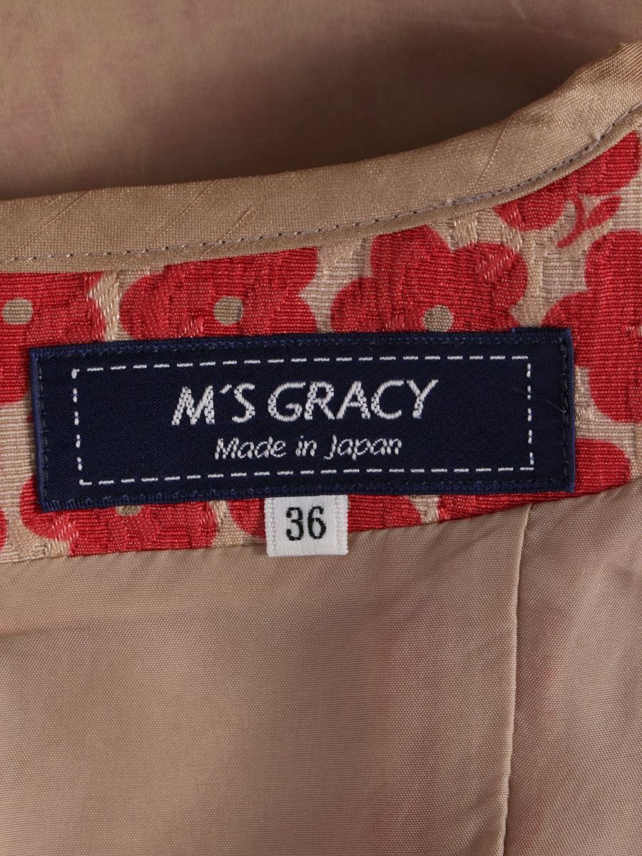 エムズグレイシー 111706 ワンピース 36 ベージュ/ピンク フラワーモチーフ リボン ITGE7WWKP9QC
