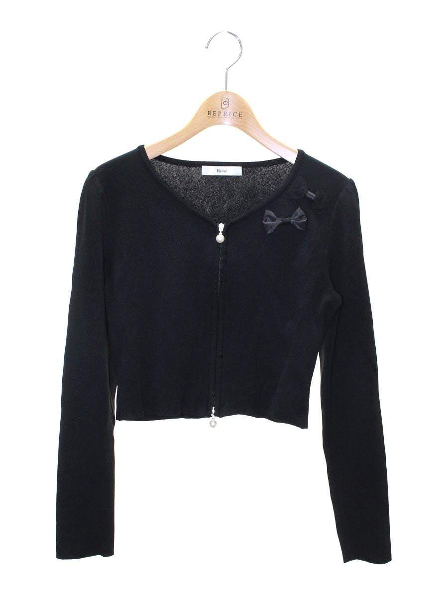 ルネ 6312810 カーディガン ボレロ 38 ブラック パールジップ リボン ITGTLQ1IK4WW