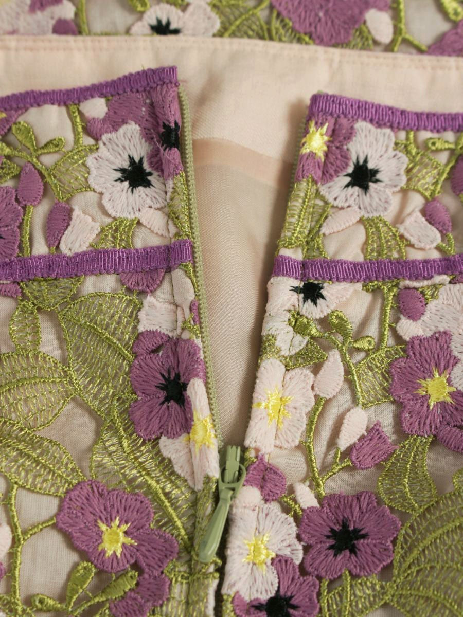 トッカ SKTOHW0310 スカート 0 グリーン/パープル フラワーモチーフ 刺繍 ITH6IAHY2EDG