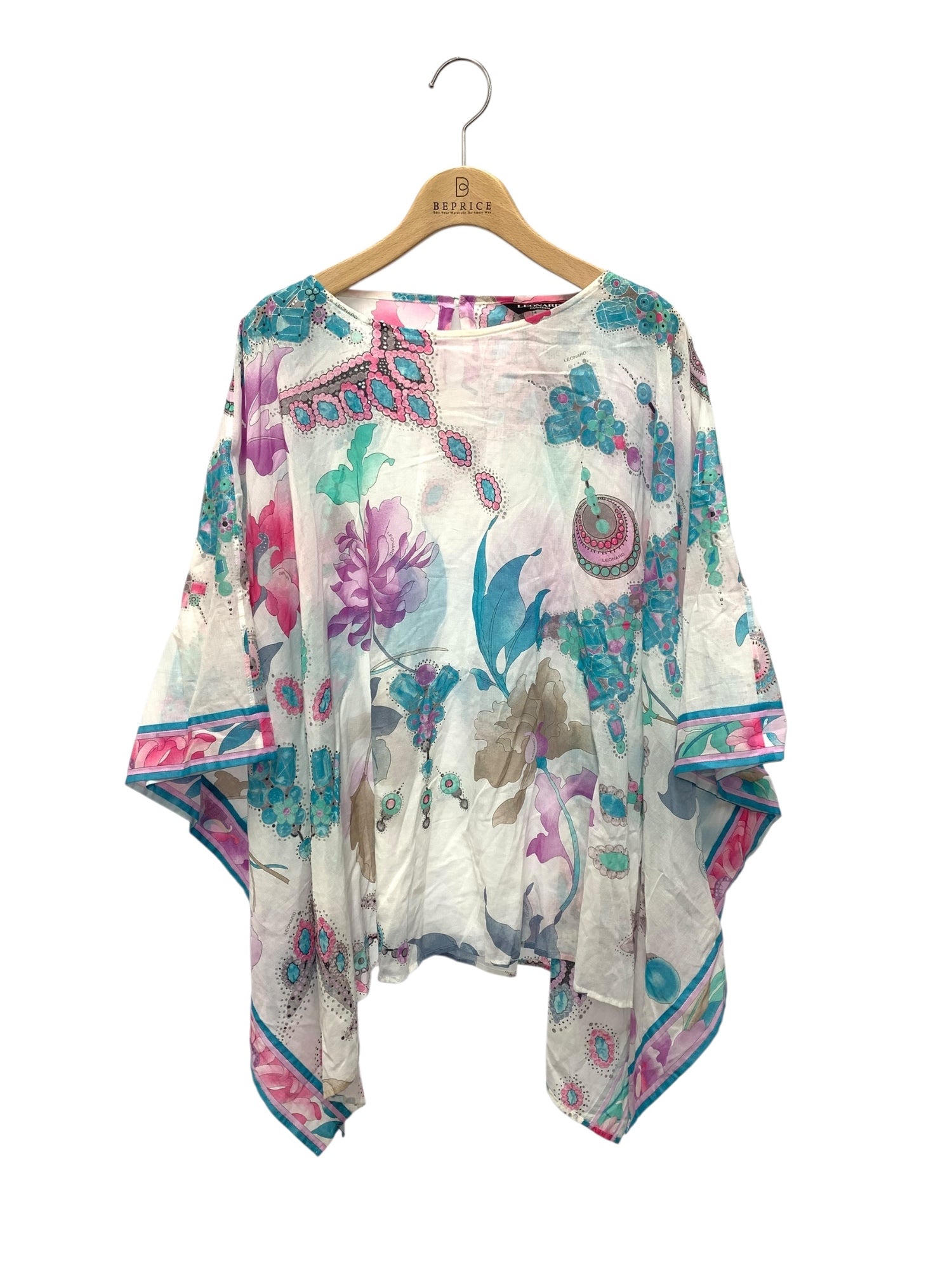 レオナール 0395821 ポンチョブラウス 38 ホワイト フラワープリント ITHB0KMYNQ8C