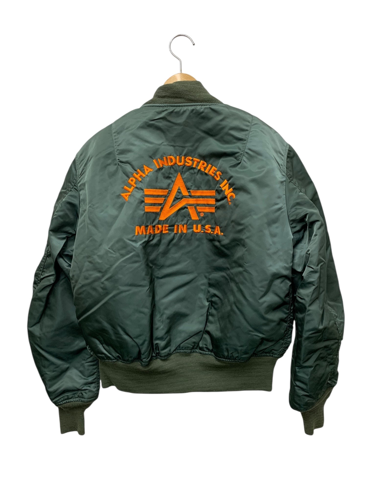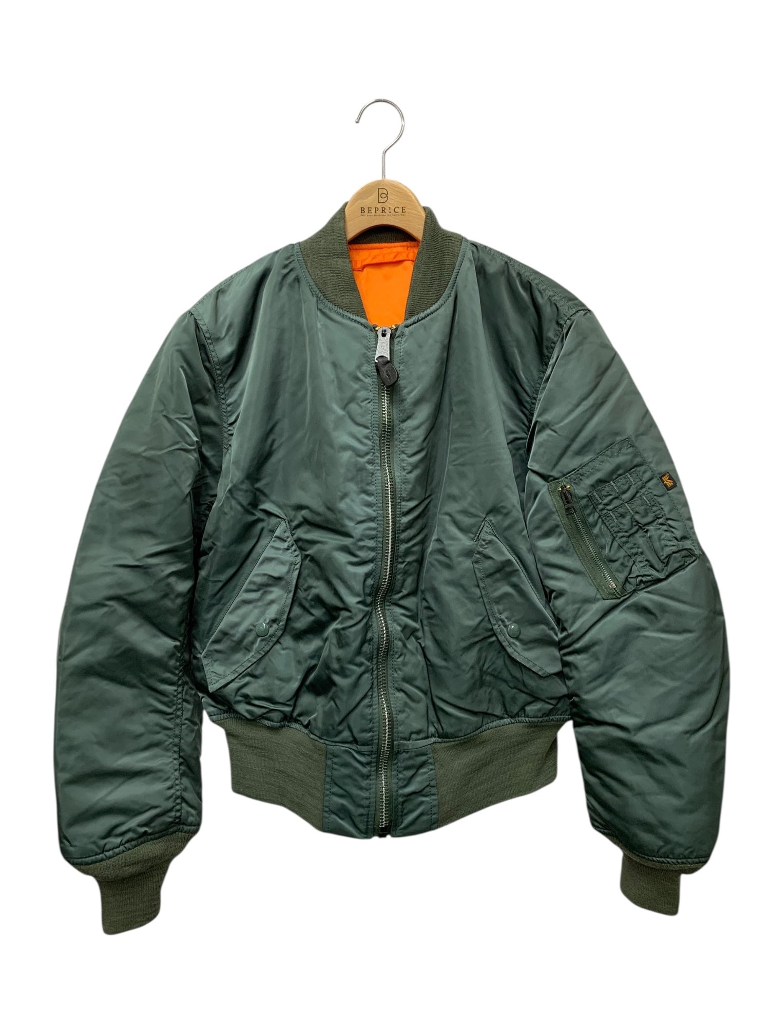 アルファインダストリーズ ブルゾン M カーキグリーン リバーシブル ロゴ刺繡(オレンジ) ITHP8WJ5TS2I