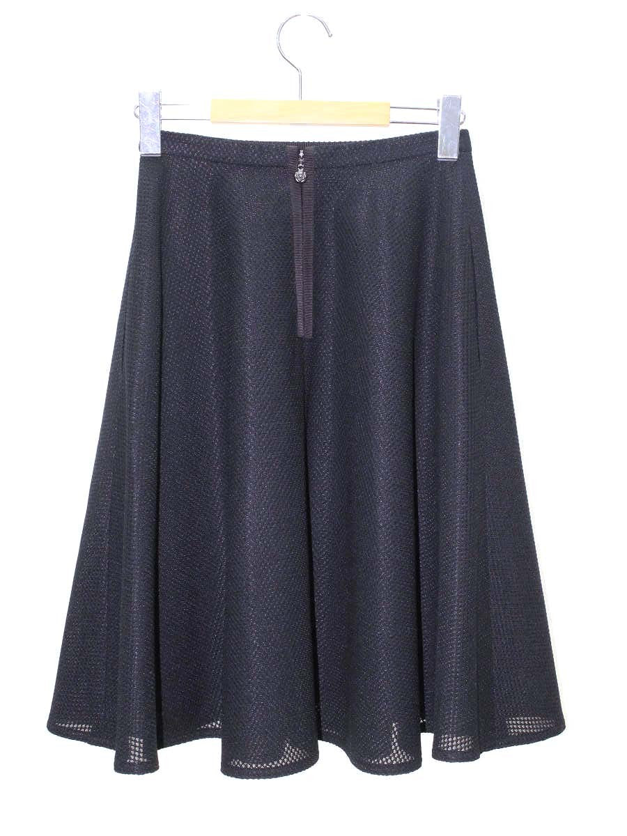 ルネ basic 5714060 スカート 34 ブラック フラワーモチーフ フレア カメリアジップ ITHZXTZCBDEE