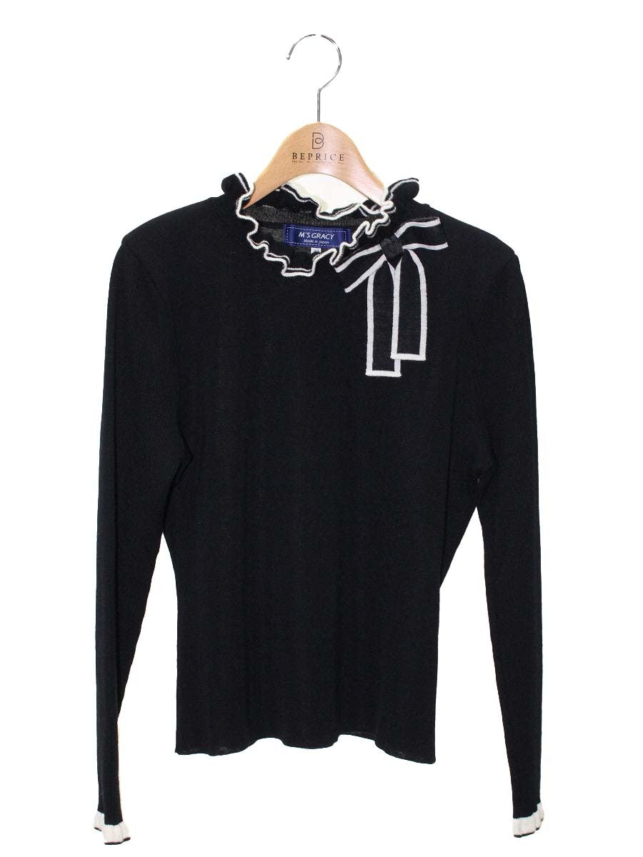 エムズグレイシー 配色フリルニット 218526 40 ブラック ITI4QMNJHCMW