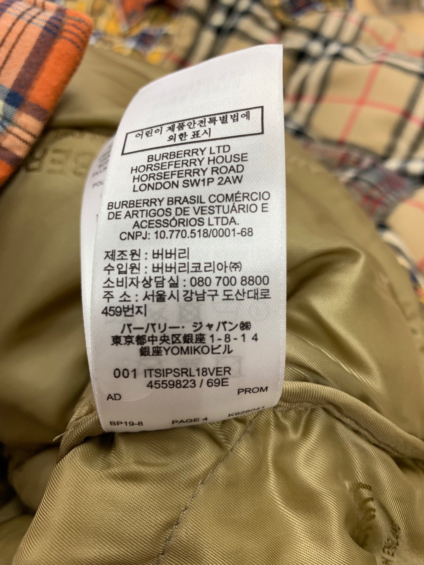 バーバリー 4559823 M マルチカラー コントラストチェック キルティング ダウンジャケット ITJ0TJEX8K76
