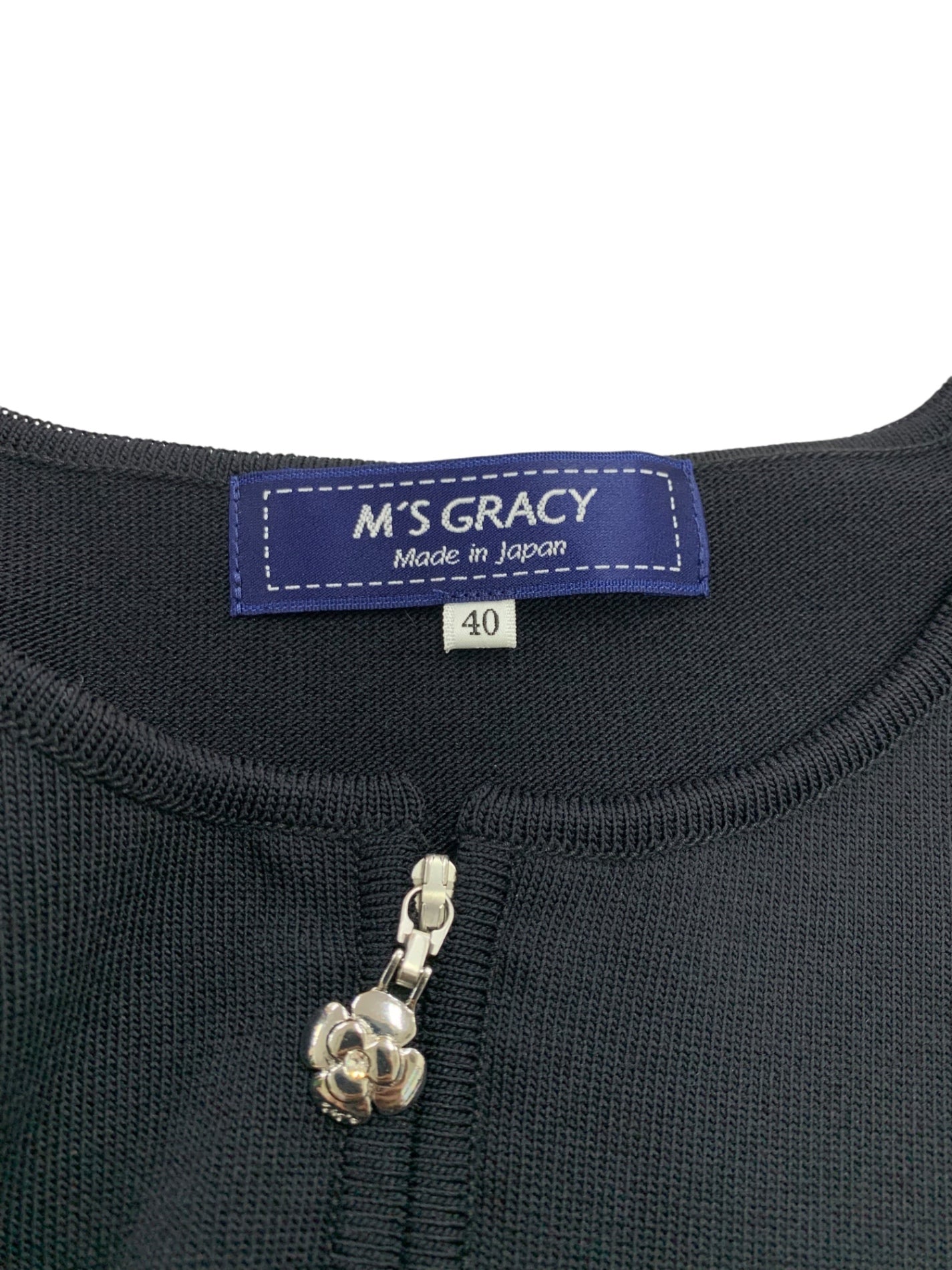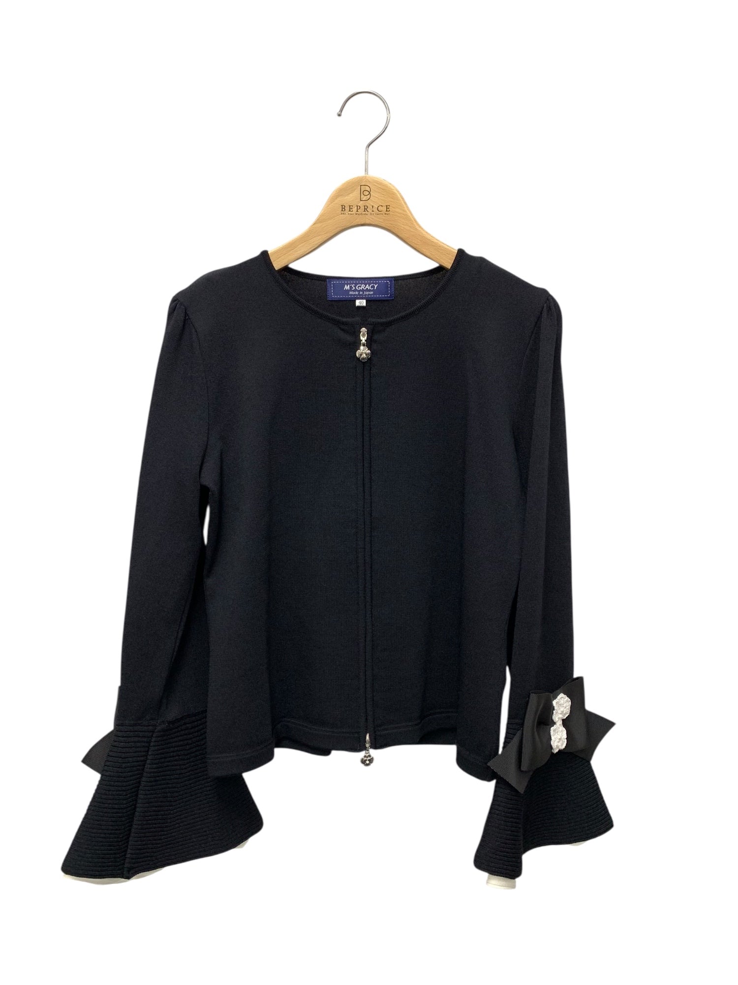 エムズグレイシー 318101 カーディガン 40 ブラック ジップアップ 袖リボン ITJXQFPODRY0