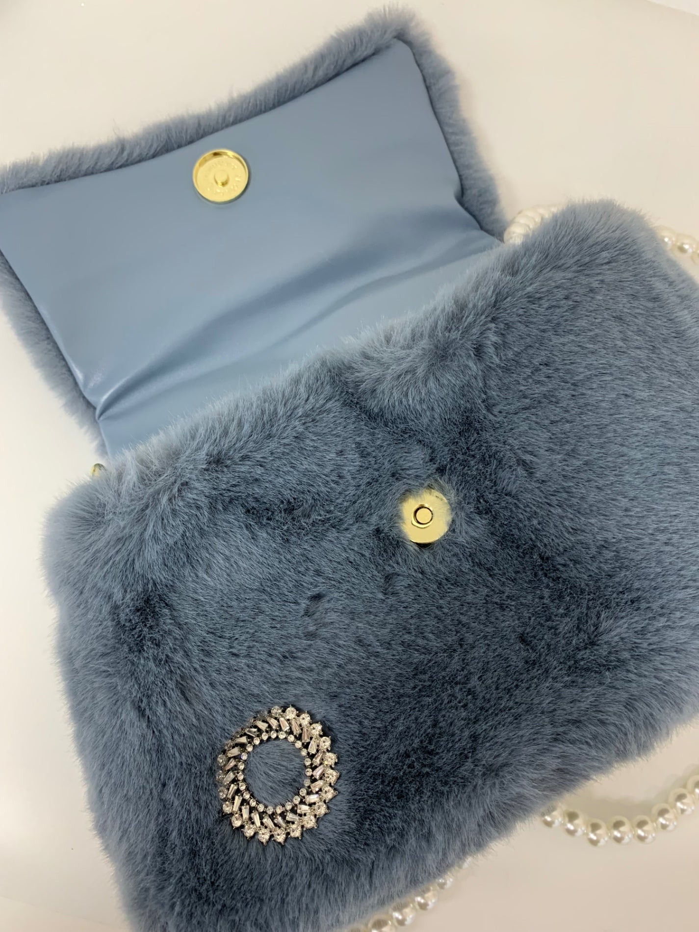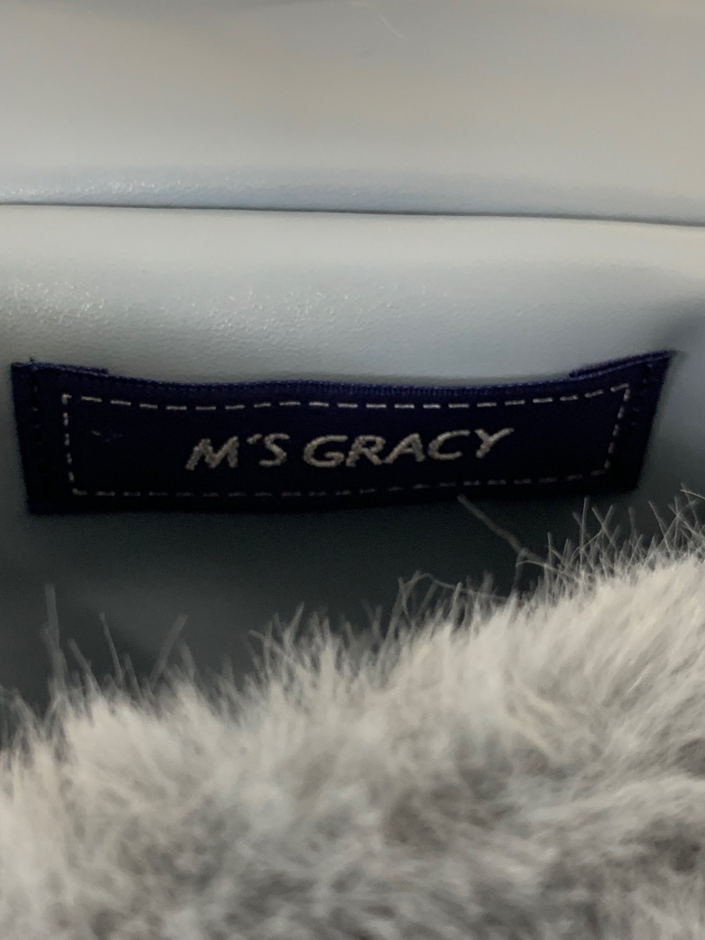 エムズグレイシー パールショルダー付きフェイクファーバッグ 494538 ブルー ITKIYFM1RL5O