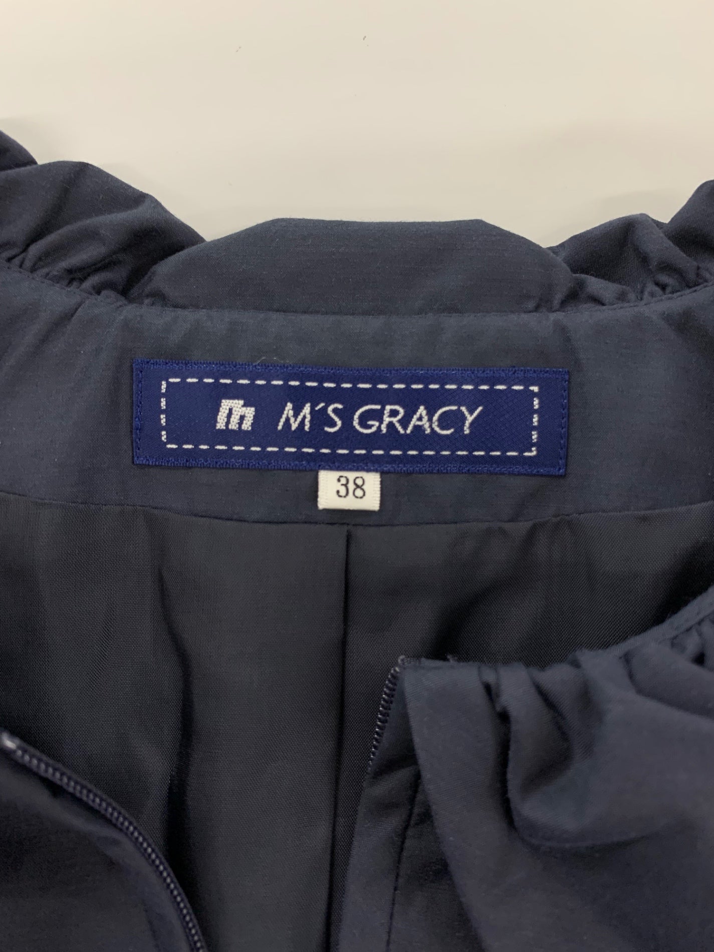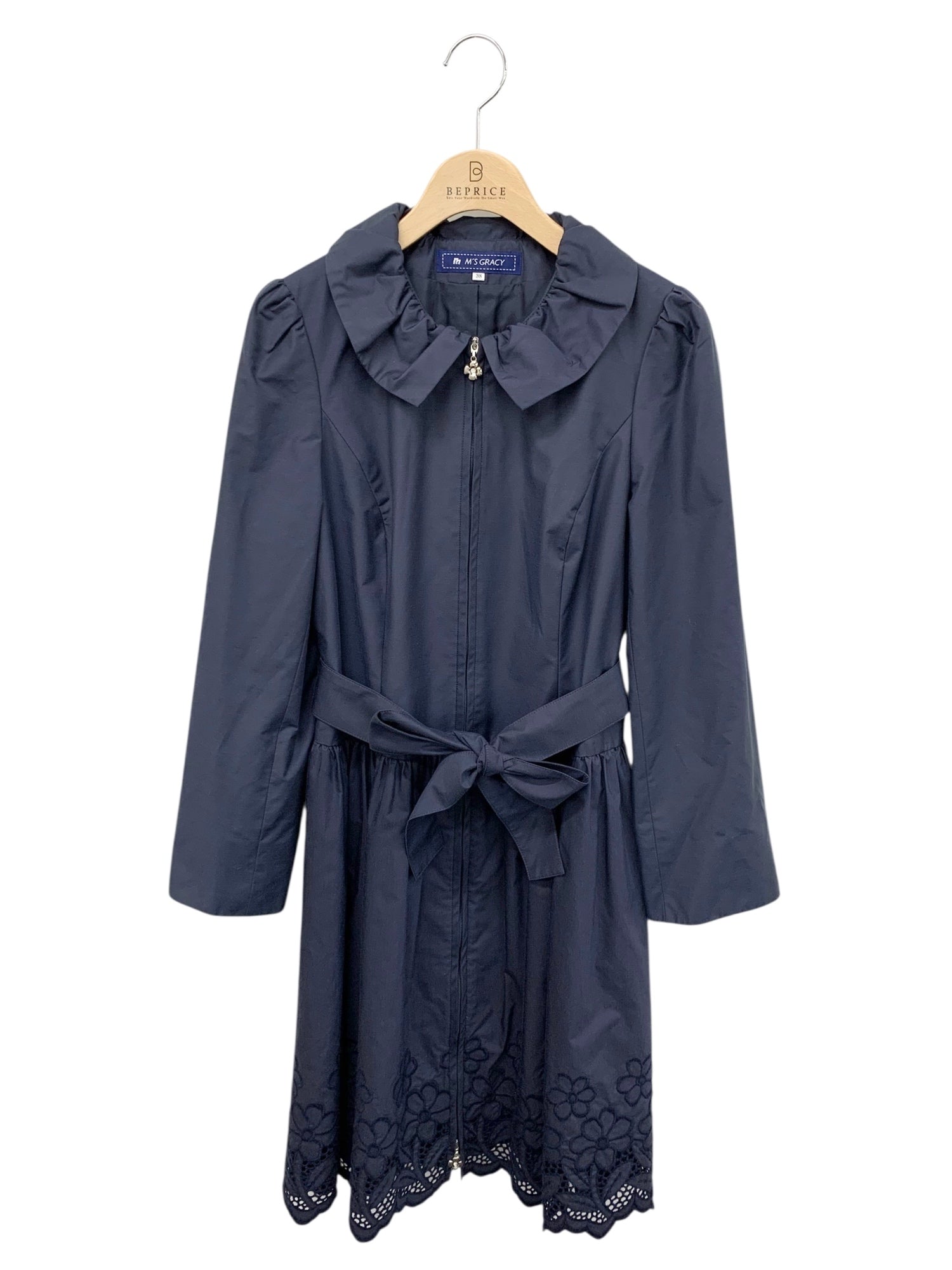 エムズグレイシー 729105 コート 38 ネイビー ジップアップ フラワーモチーフ ITKP4A9NW587