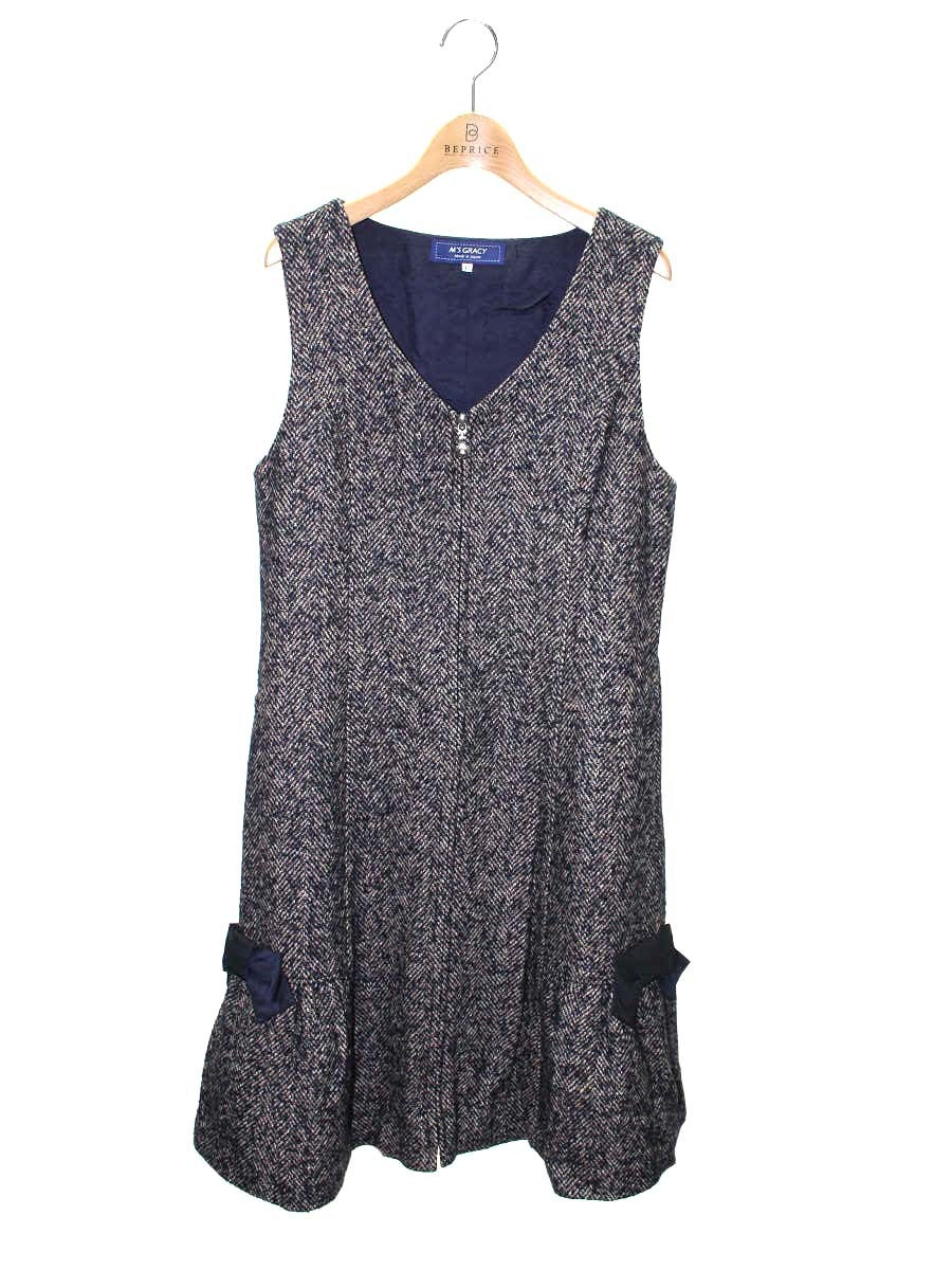 エムズグレイシー 911709 ワンピース 40 ネイビー フロントジップ リボン ITKPCY199AQG