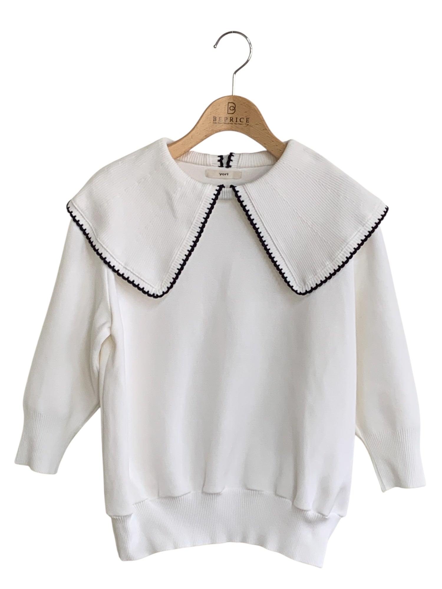 ヨリ コットン刺繍カラーニット YR31-24040SP ニット セーター F ホワイト ITLBVZ9KGZF4