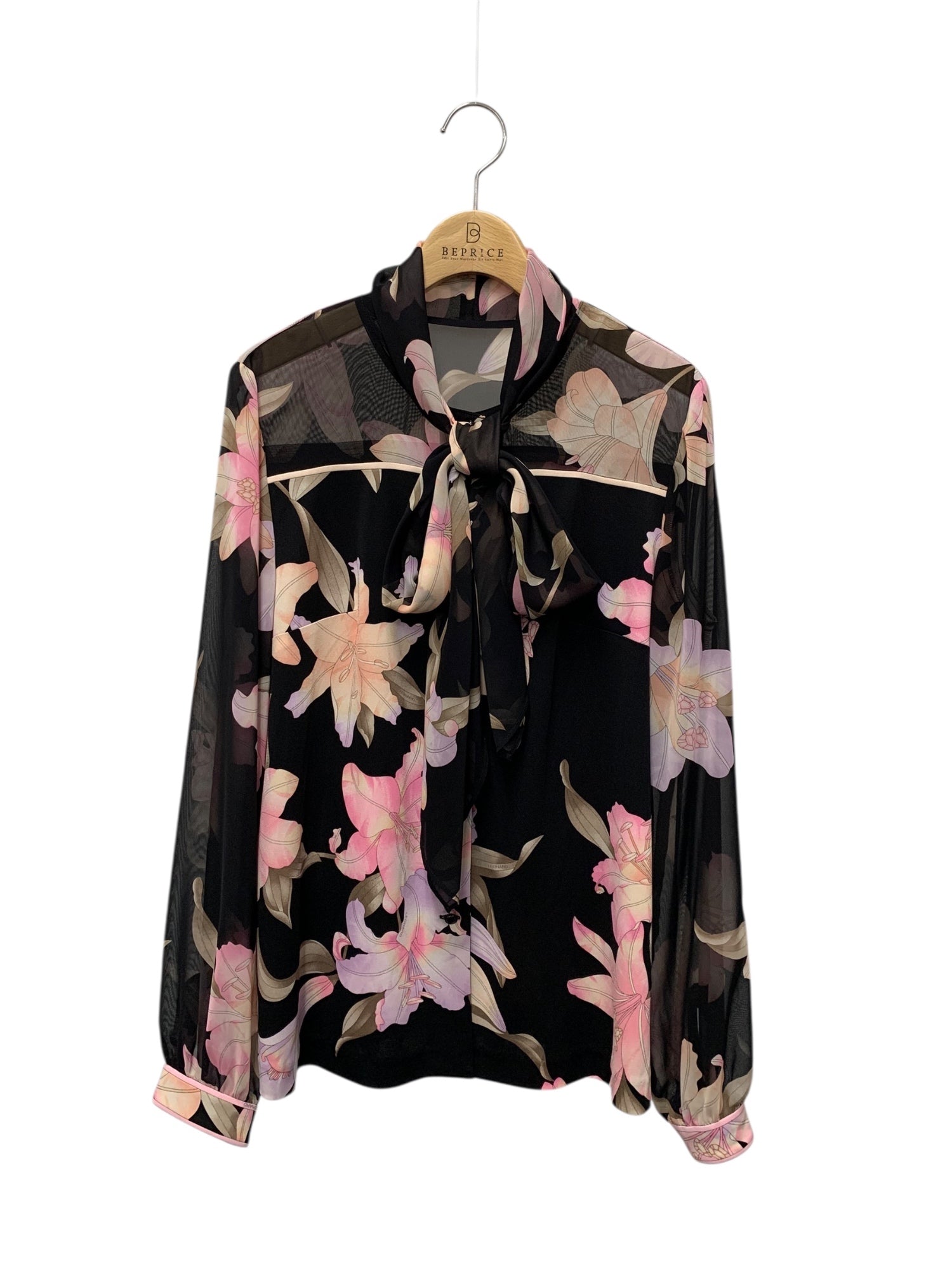 レオナールファッション 0149206 42 ブラック フラワープリント ボウタイブラウス ITLQKNU75P4E
