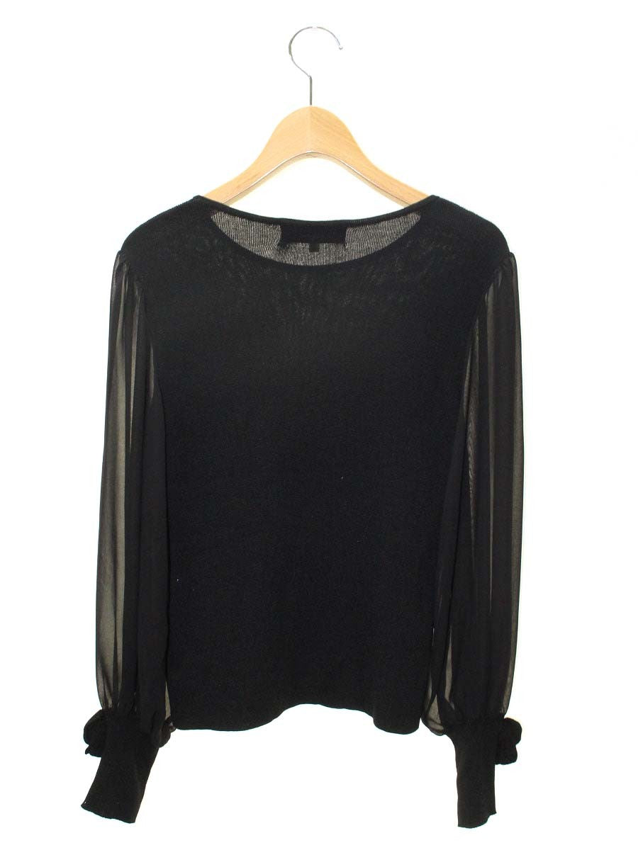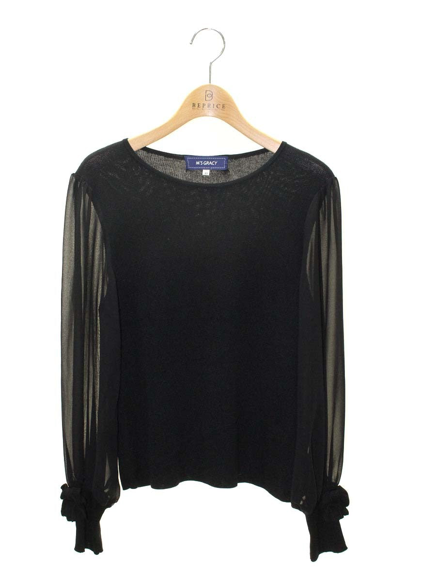 エムズグレイシー 918119 Tシャツ カットソー 40 ブラック 袖リボン シースルー ニット ITLS0M5AIC5K