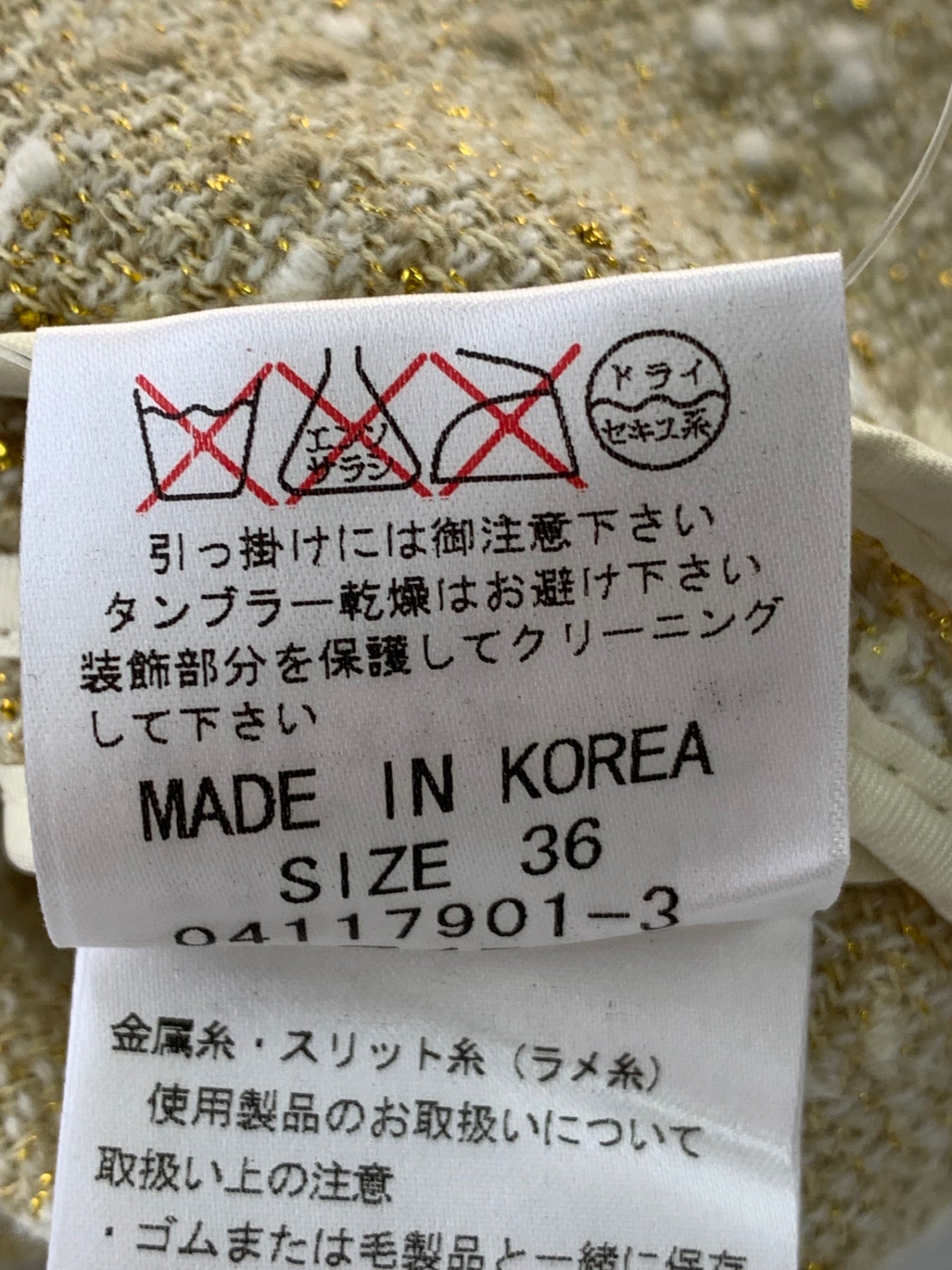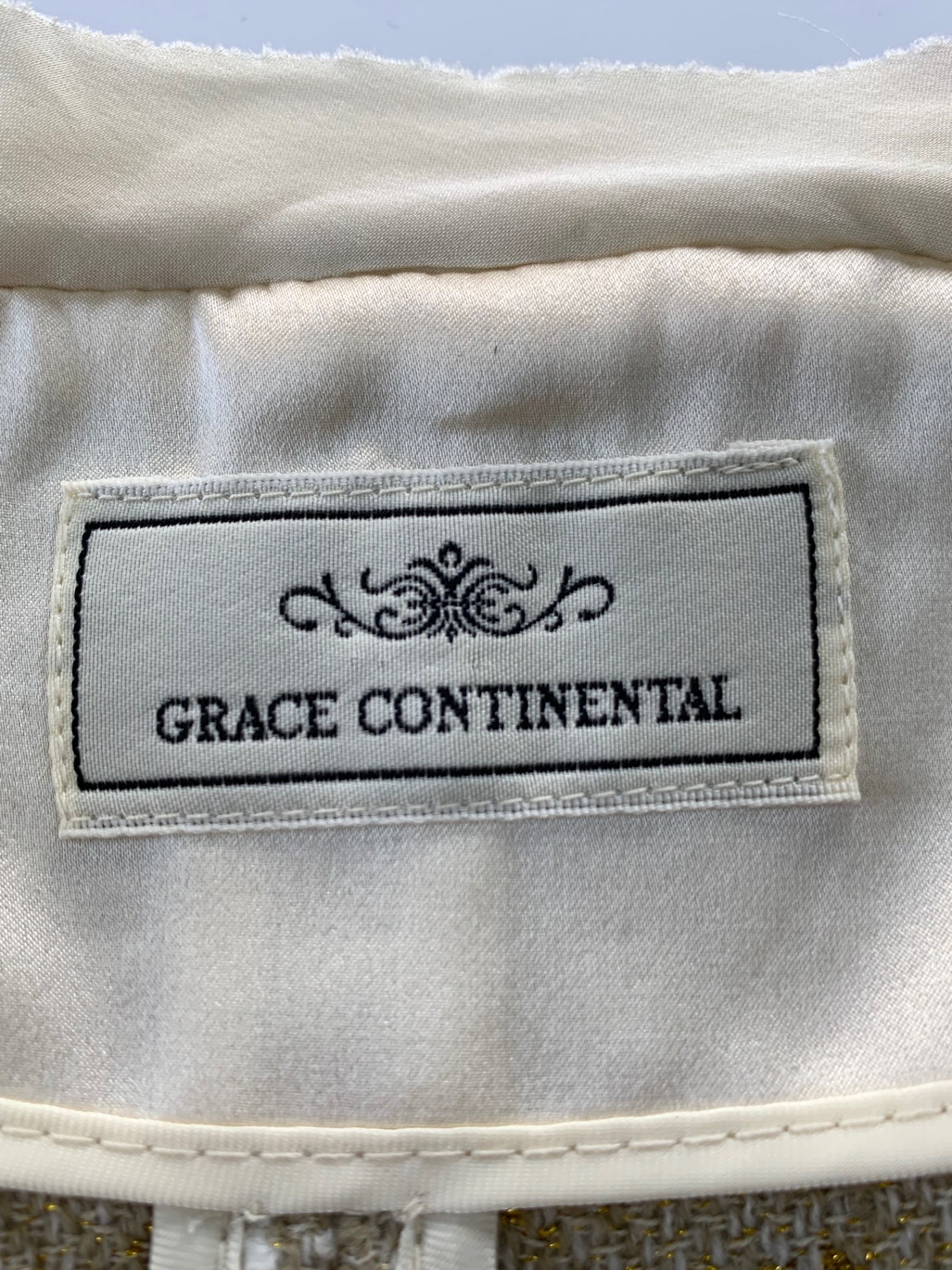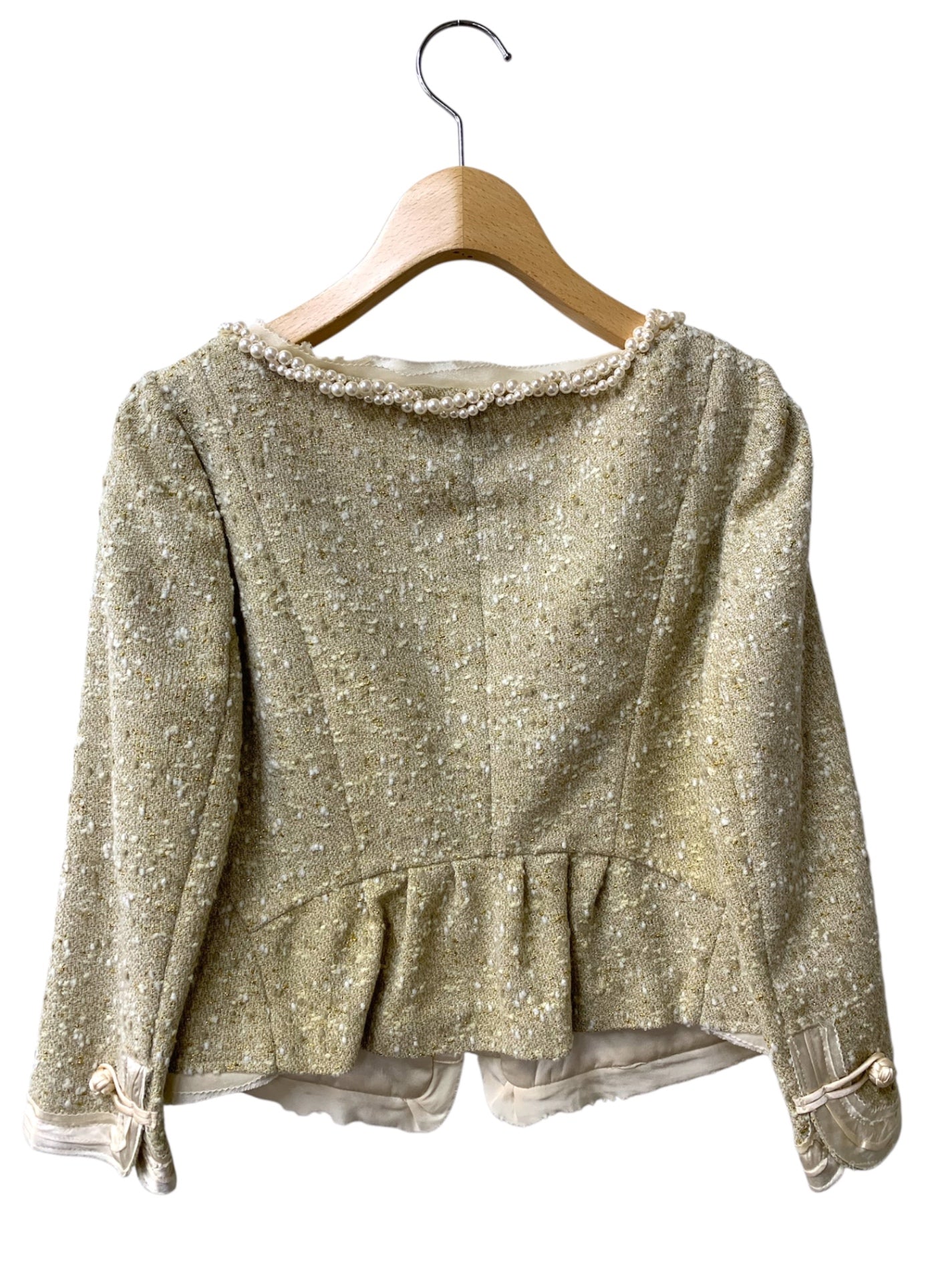 グレースコンチネンタル 04117901-3 ジャケット 36 ベージュ ノーカラー ツイード パール ラメ フリル ITLTUYD0X2BG 【SALE】