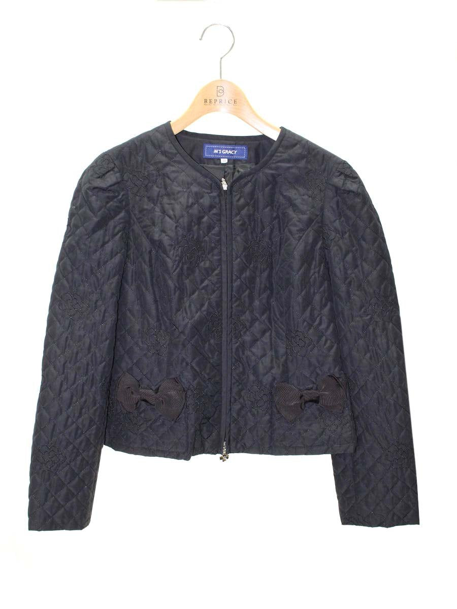 エムグレイシー 814105 ブルゾン 38 ブラック キルティング フラワーモチーフ ジップアップ ITMAFD2YL6TE