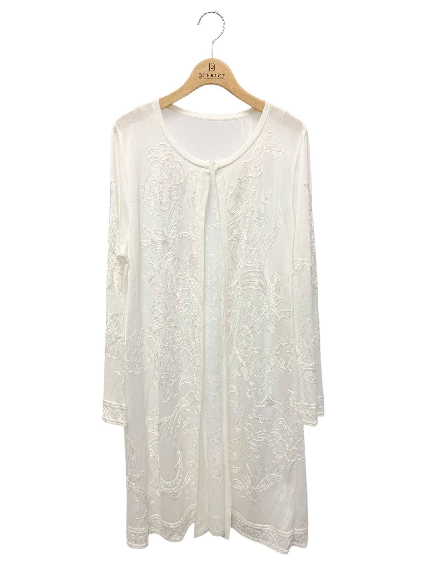 レオナールファッション 0357713 42 ホワイト ロング丈 シアー ニット カーディガン スパンコール レース ITMWVL9UWSK8