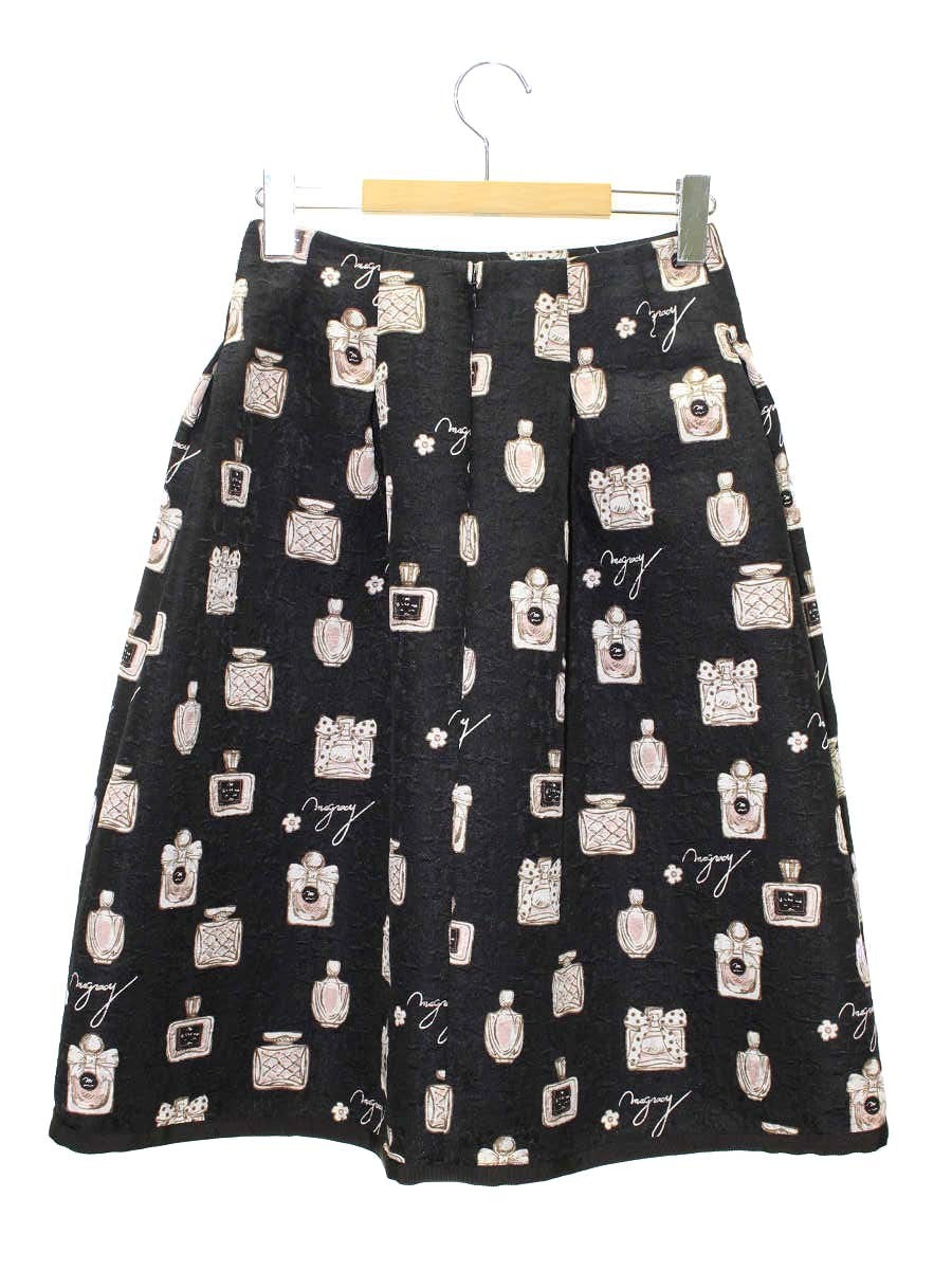 エムズグレイシー 317535 スカート 36 ブラック 香水瓶 花 ITN0AB3WZCKG