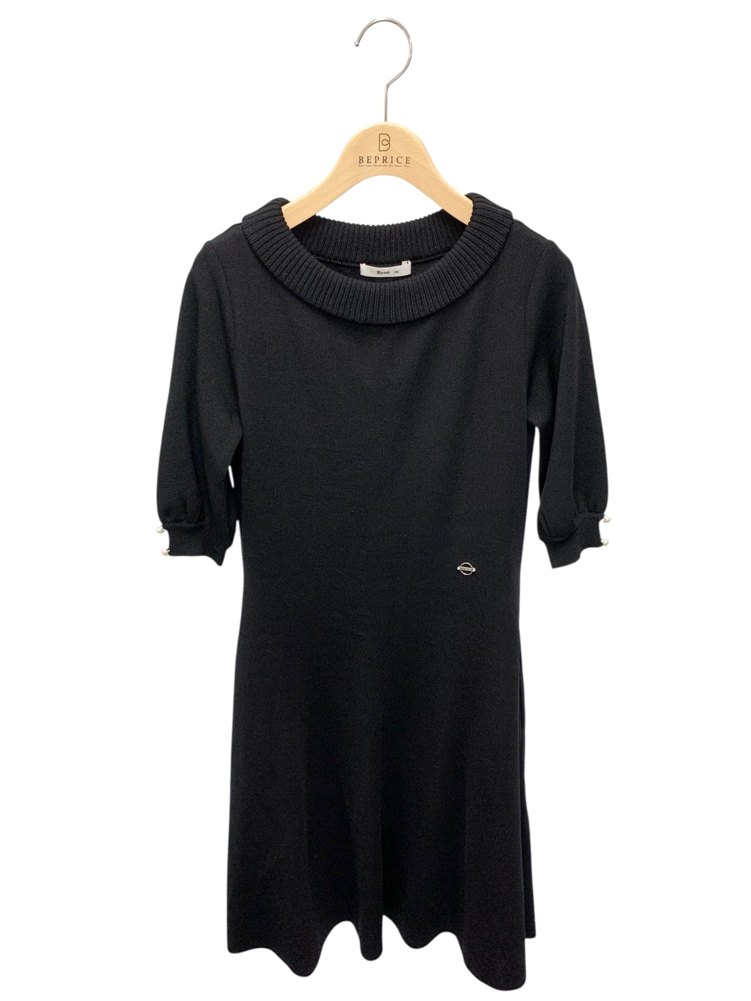 ルネ 6022090 ワンピース 34 ブラック ニット ストレッチ ドレス パール ITN7RKFQGXW0 【SALE】