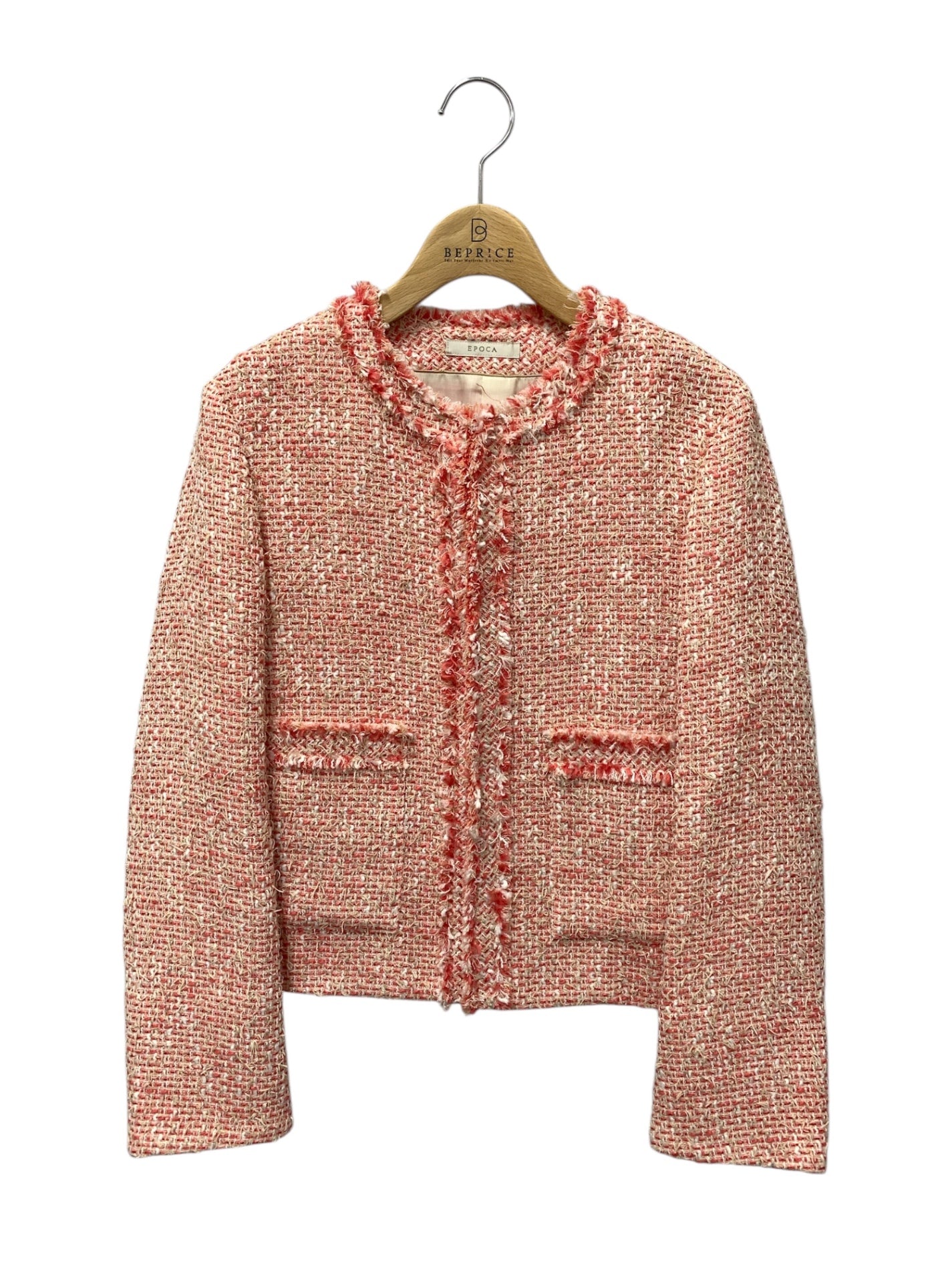 エポカ ライトファンシーツィード ノーカラージャケット M5E17-530 40 ピンク ITO5DYMXWS8A