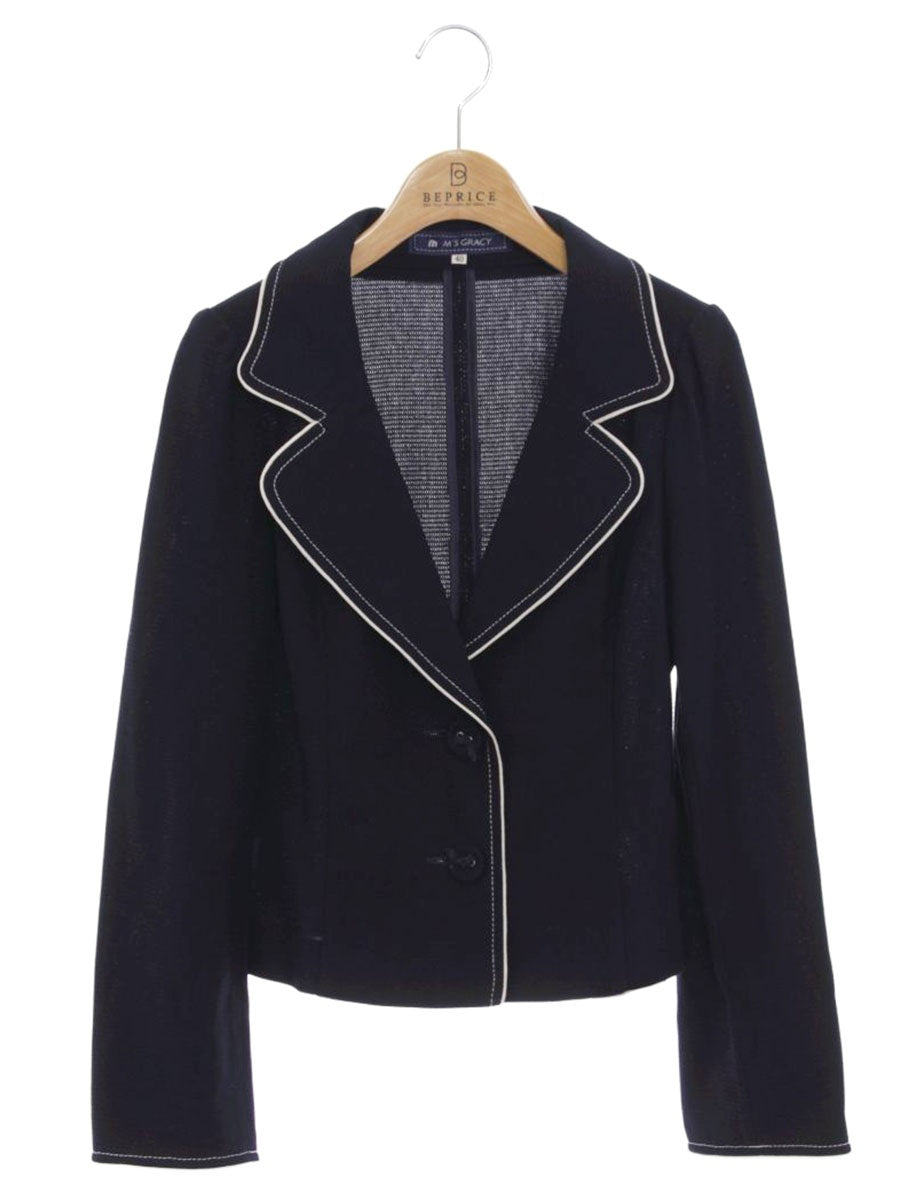 エムズグレイシー 624114 テーラードジャケット 40 ネイビー 2B パイピング ITP78TAPOHFK