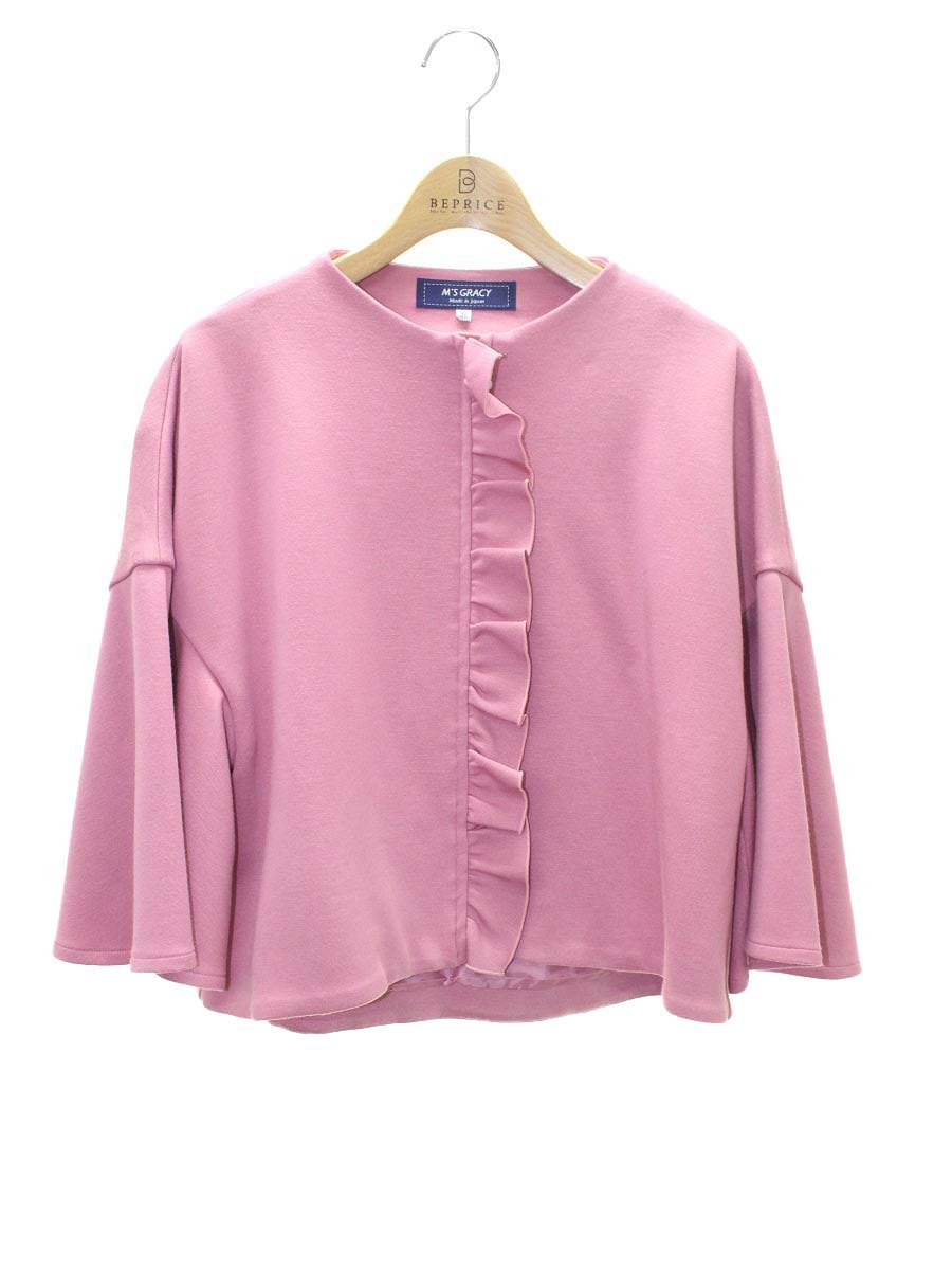 エムズグレイシー 314515 ノーカラージャケット 38 ピンク フリル フラワージップ ITP8W1QBPB40