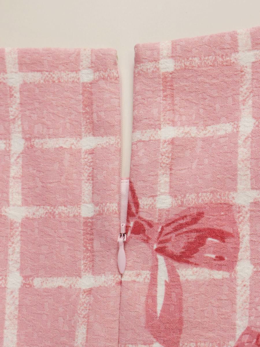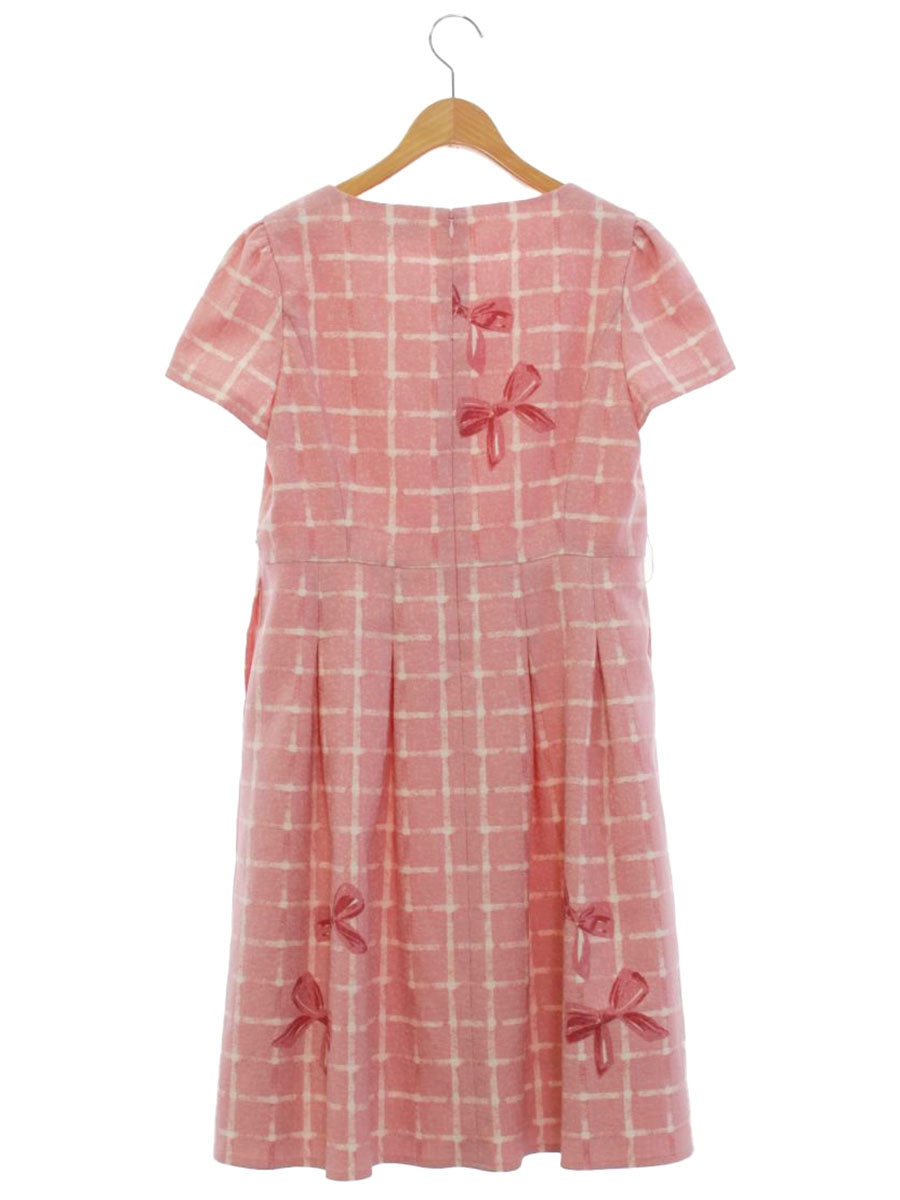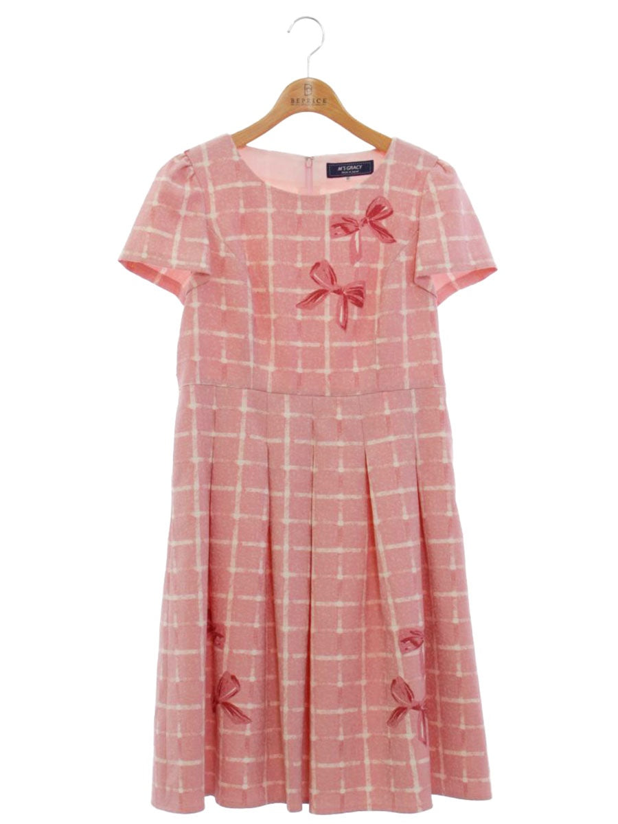 エムズグレイシー 811507 ワンピース 40 ピンク リボンモチーフ チェック ITPT86S04XVC