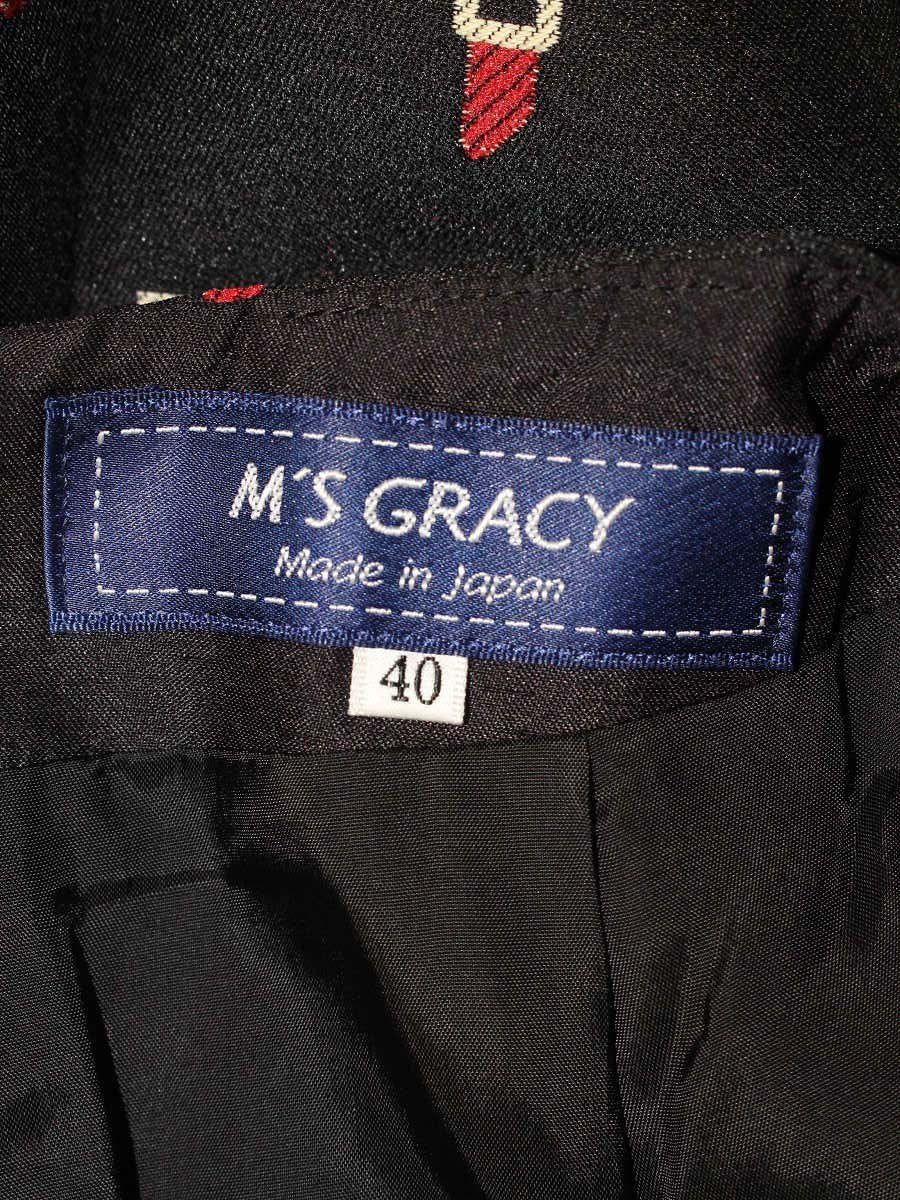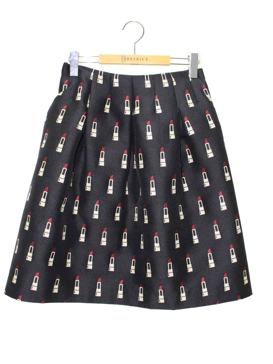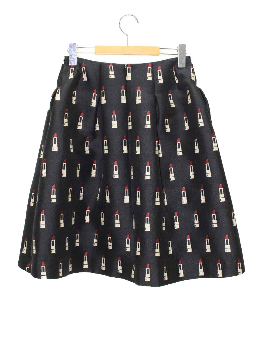 エムズグレイシー 727535 スカート 40 ブラック リップスティック柄 フレア ITQ8MSVQ4Y30