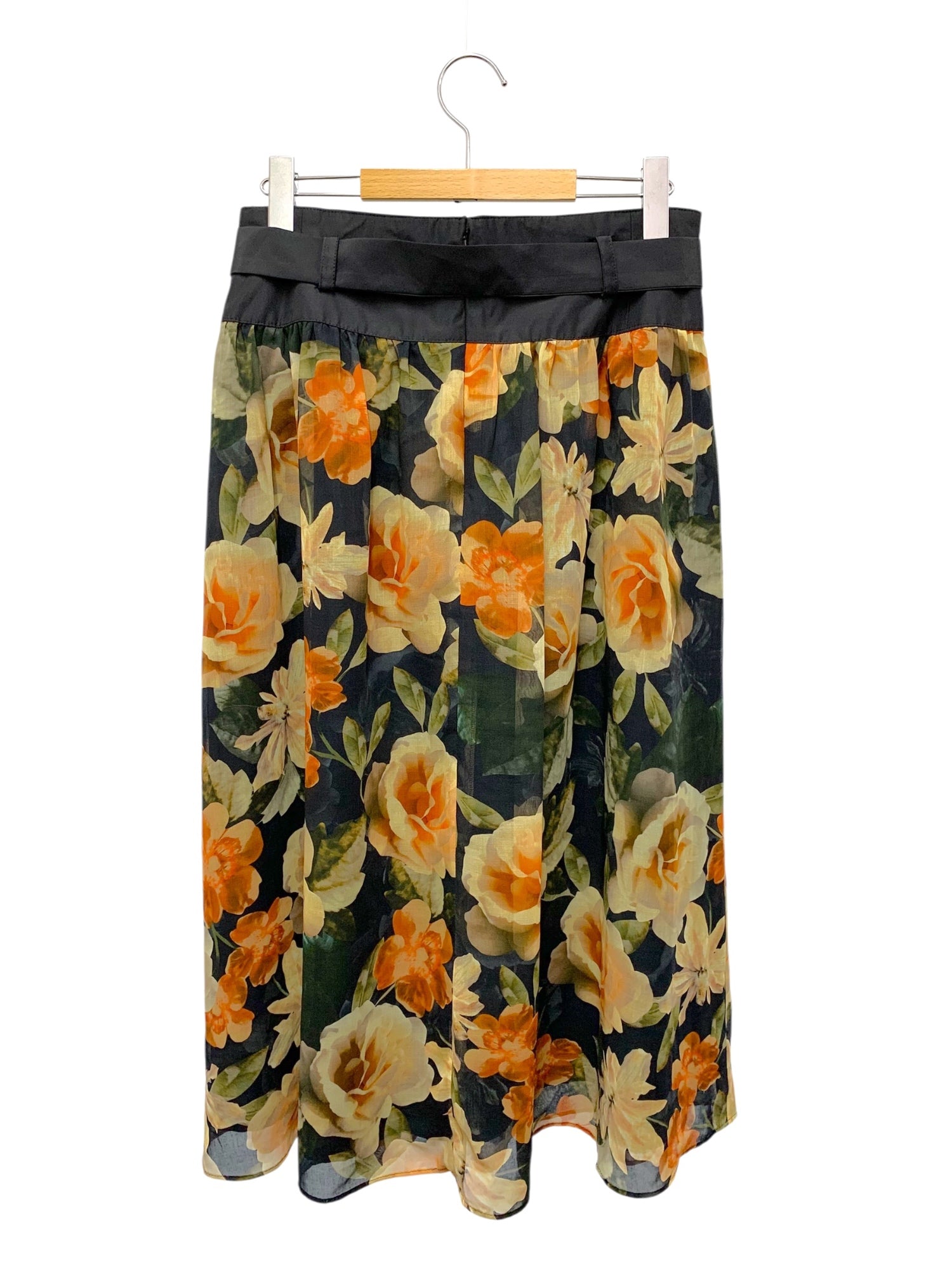 エムズグレイシー シフォンフラワープリント 517307 スカート 40 ネイビー ITQI8YB5GHPC