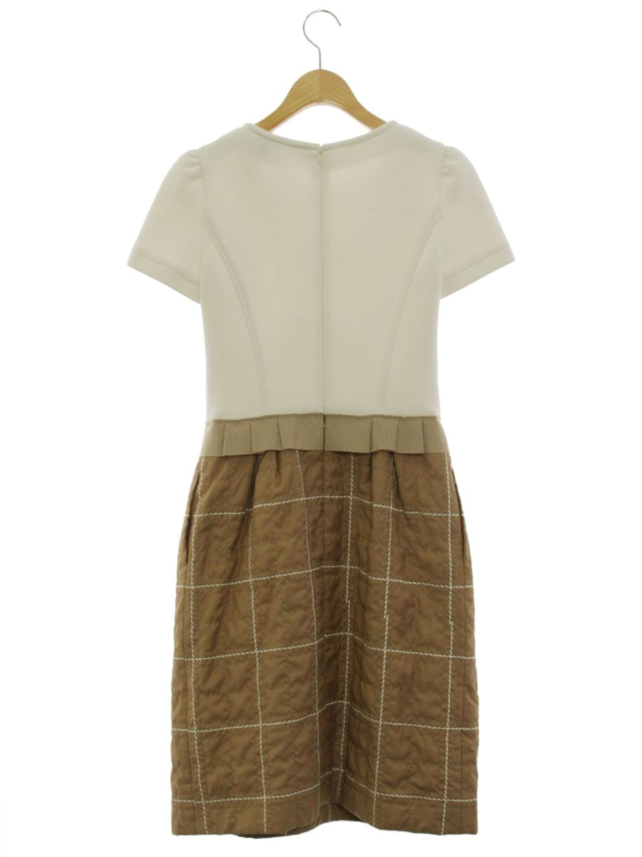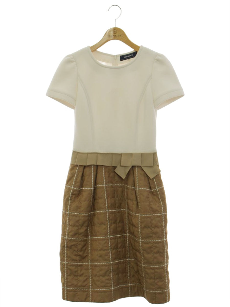 エムズグレイシー 911531 ワンピース 36 ホワイト/ライトブラウン チェック キルティング 切替 ITQZ1VLJ24TK
