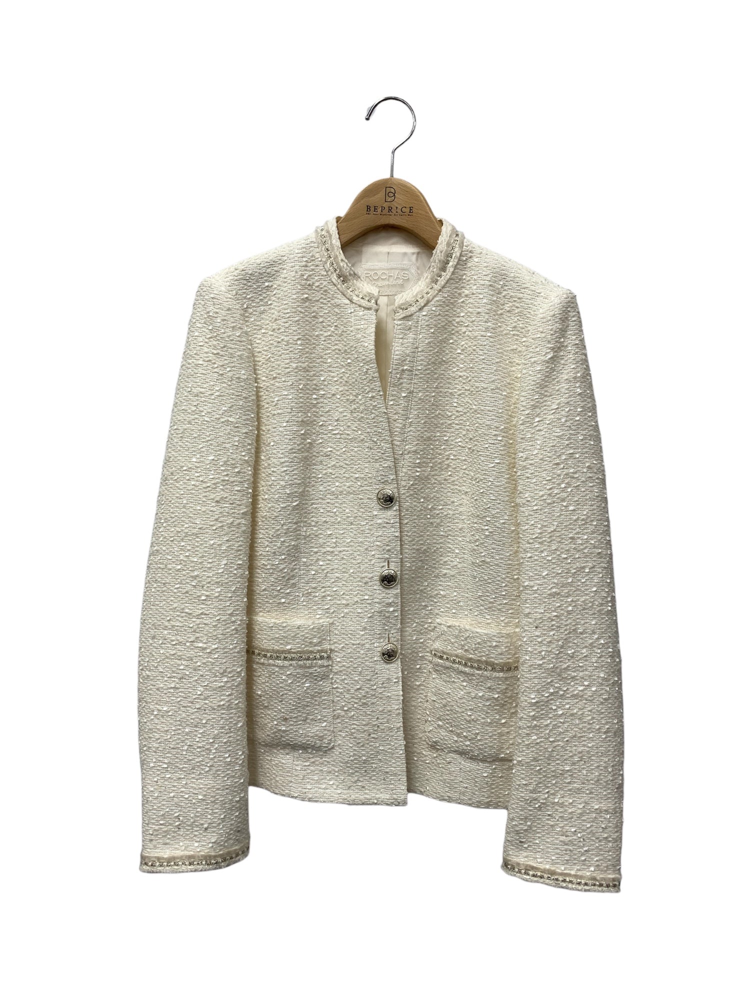 ロシャス AV-0400146 RZ24-00507AJ ノーカラージャケット 11 ホワイト ツイード ITRS5VDTZGYG