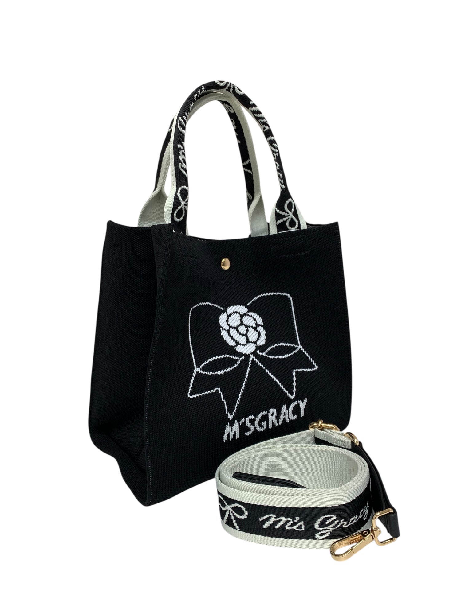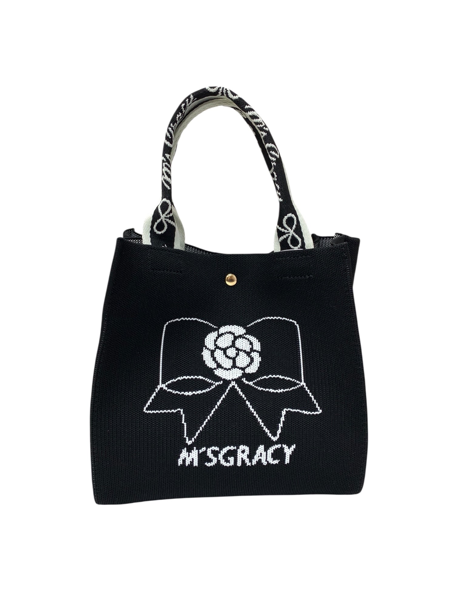 エムズグレイシー リボンコサージュ柄ニット 494523 トートバッグ ブラック ITT19FKBXFKG