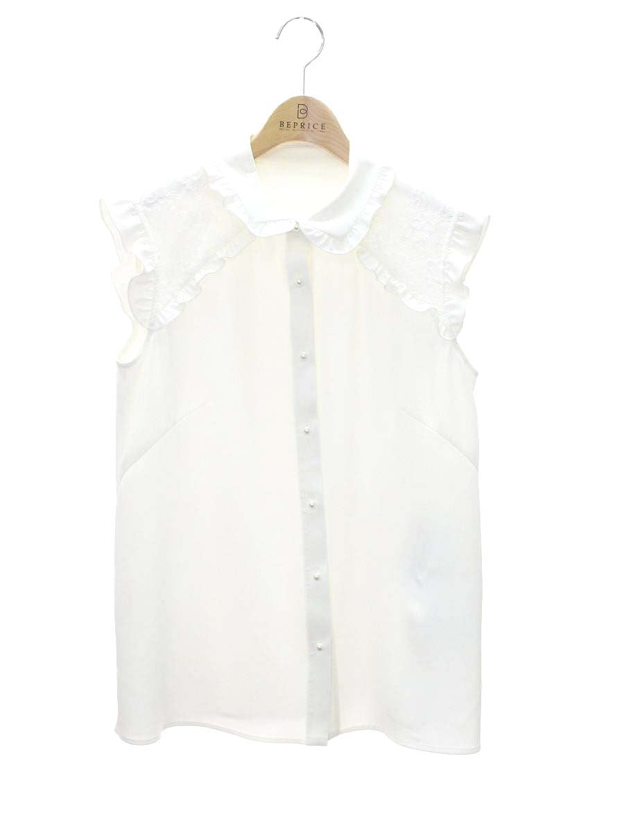 ルネ リミテッドエディション 6941960 ブラウス 34 ホワイト フリル フェイクパール レース ITT6M6JWU3WE