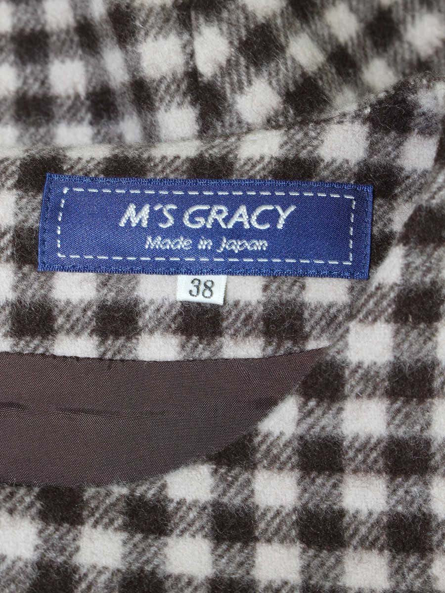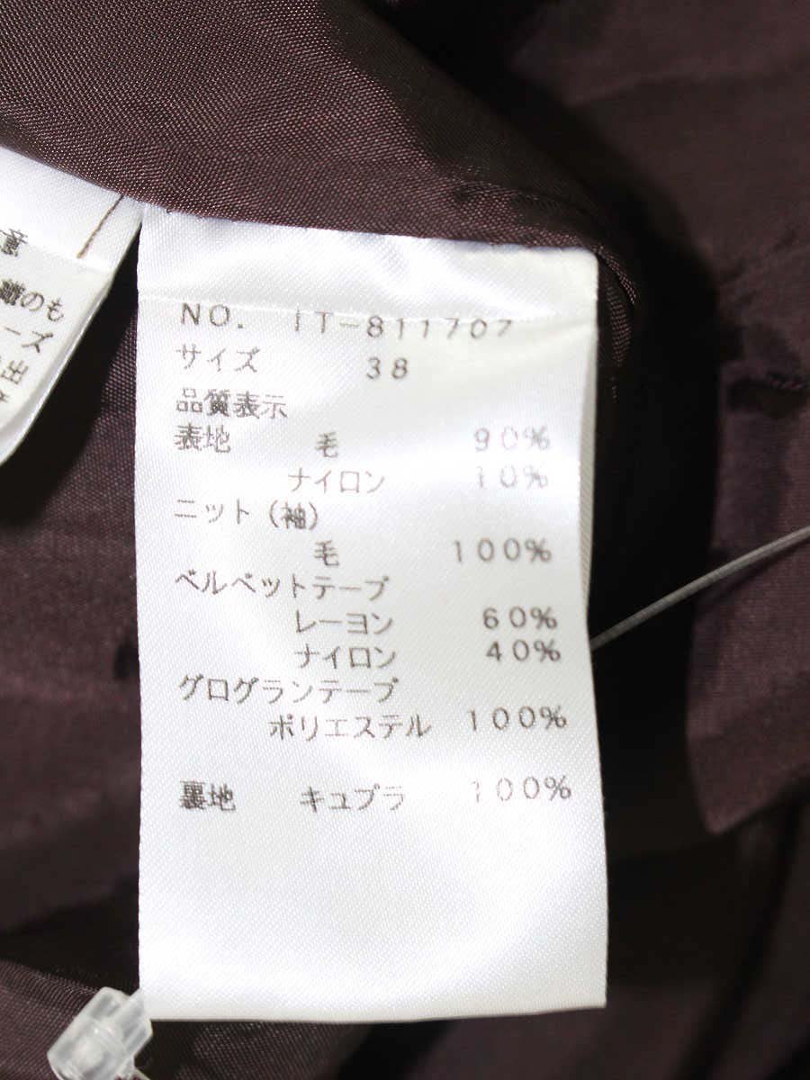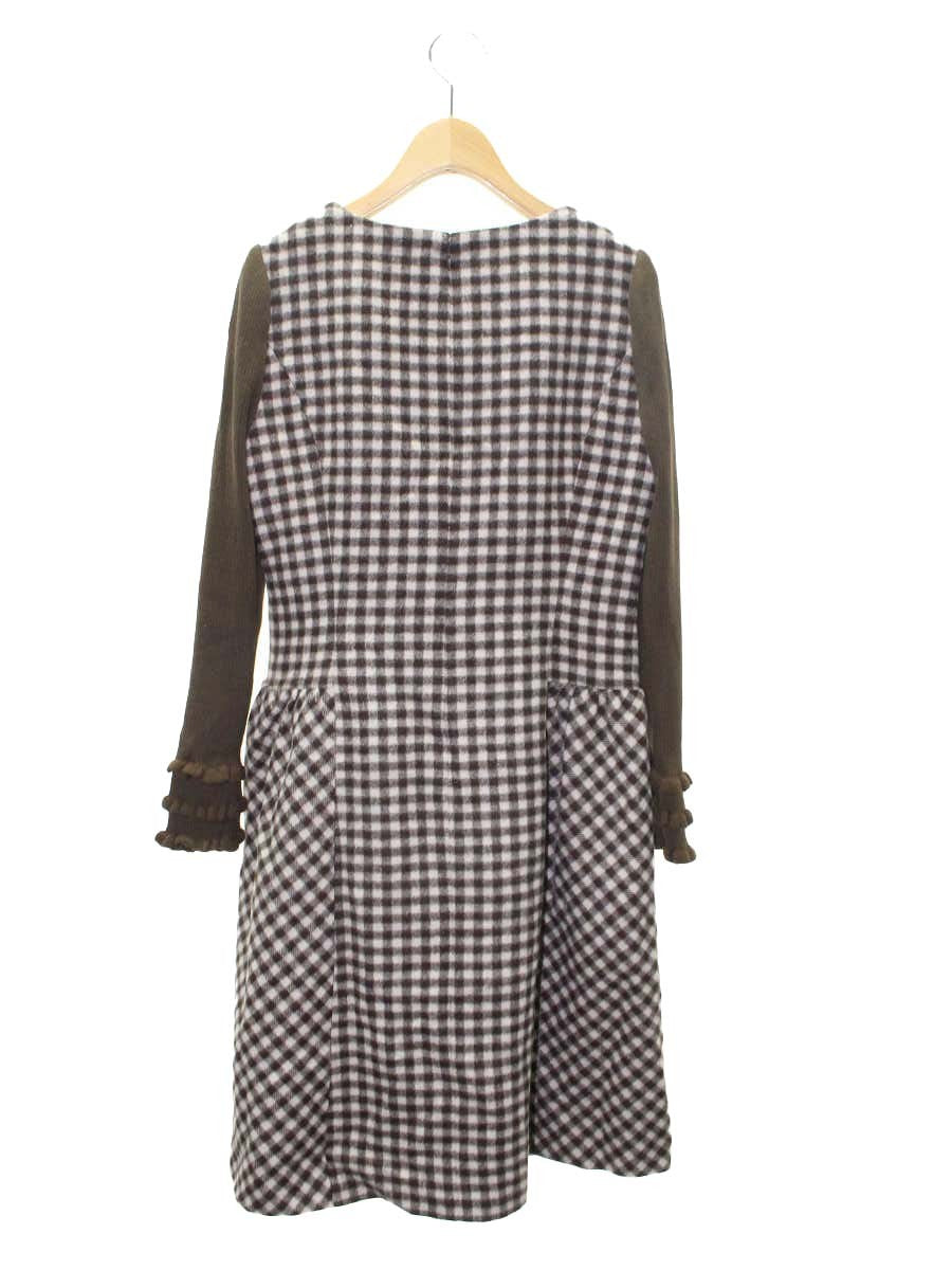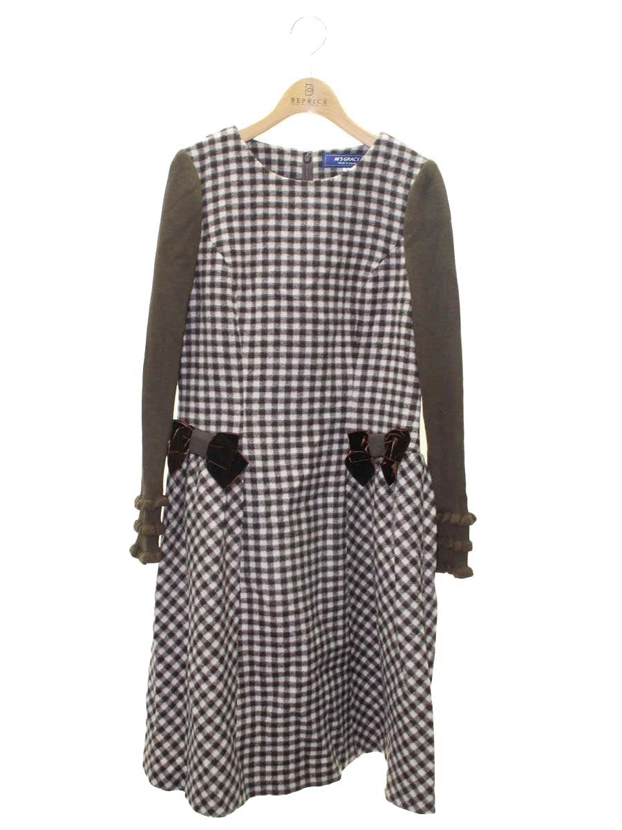 エムズグレイシー 811707 ワンピース 38 ブラウン ウール混 ベルベットリボン ニット袖 切替 ITTOM92SV1RS