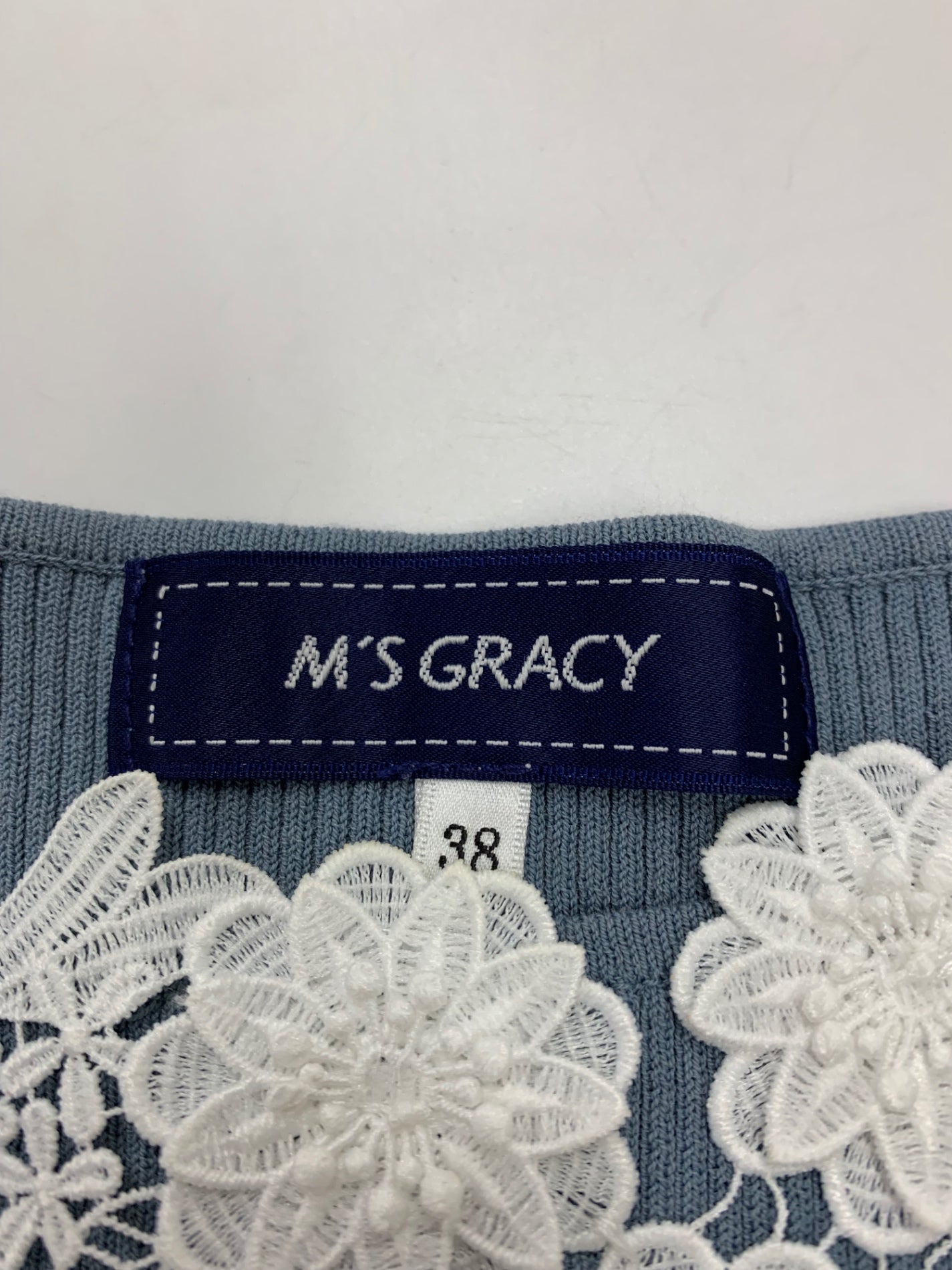 エムズグレイシー 418332 カットソー 38 ライトブルー 刺繍 リブ ITUHX8TPESP4