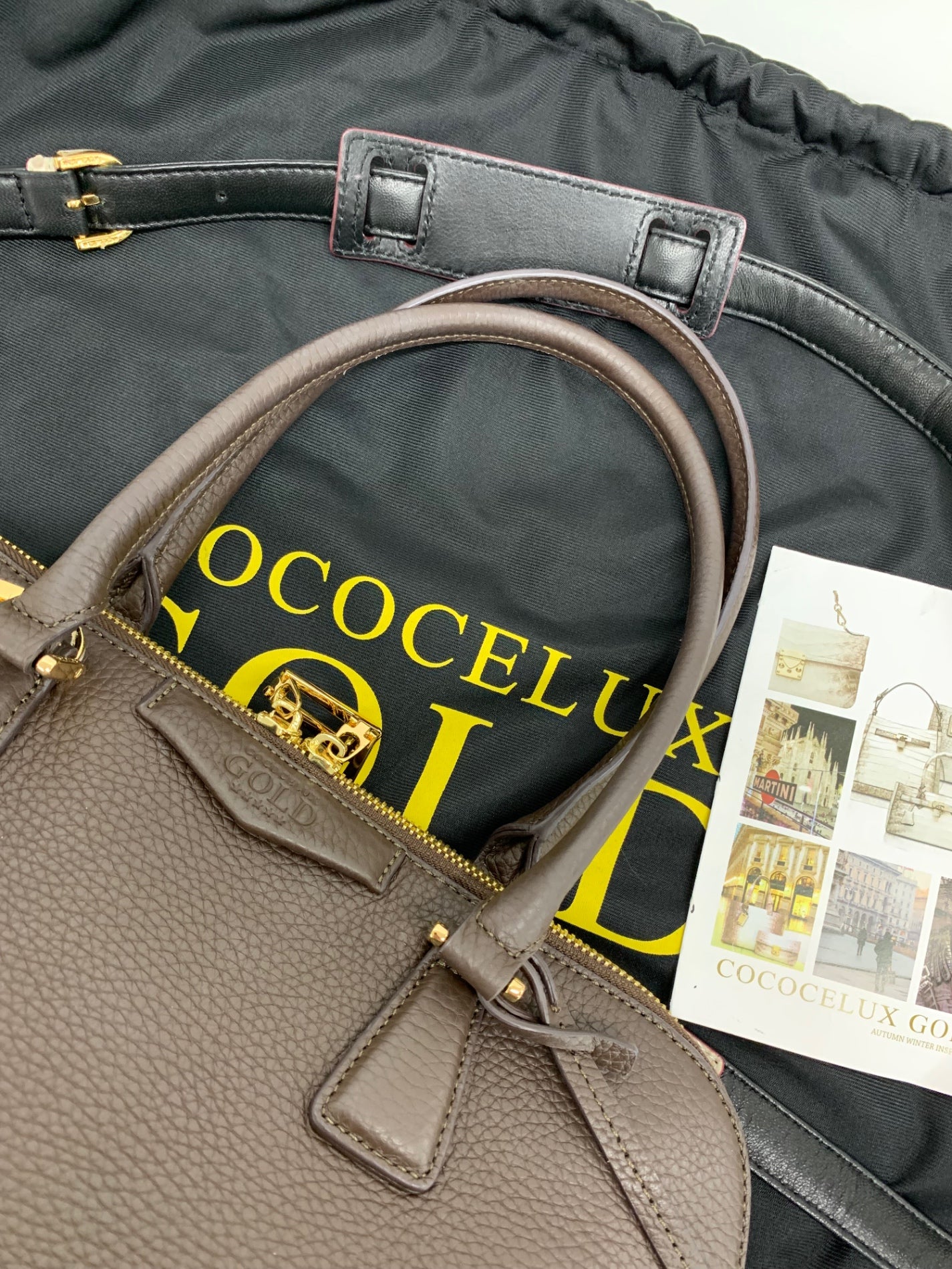 ココセリュックスゴールド ハンドバッグ ブラウン レザー 2WAY ITV08IOYHX06