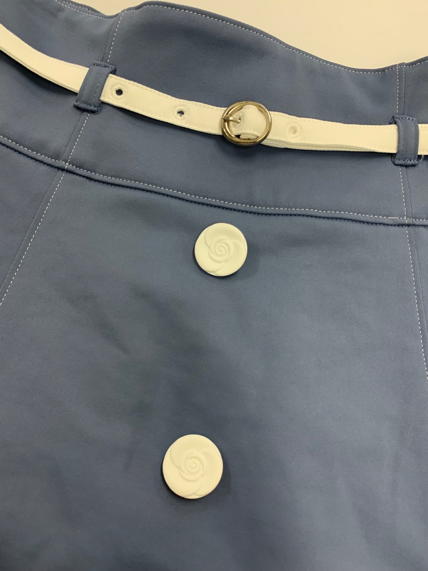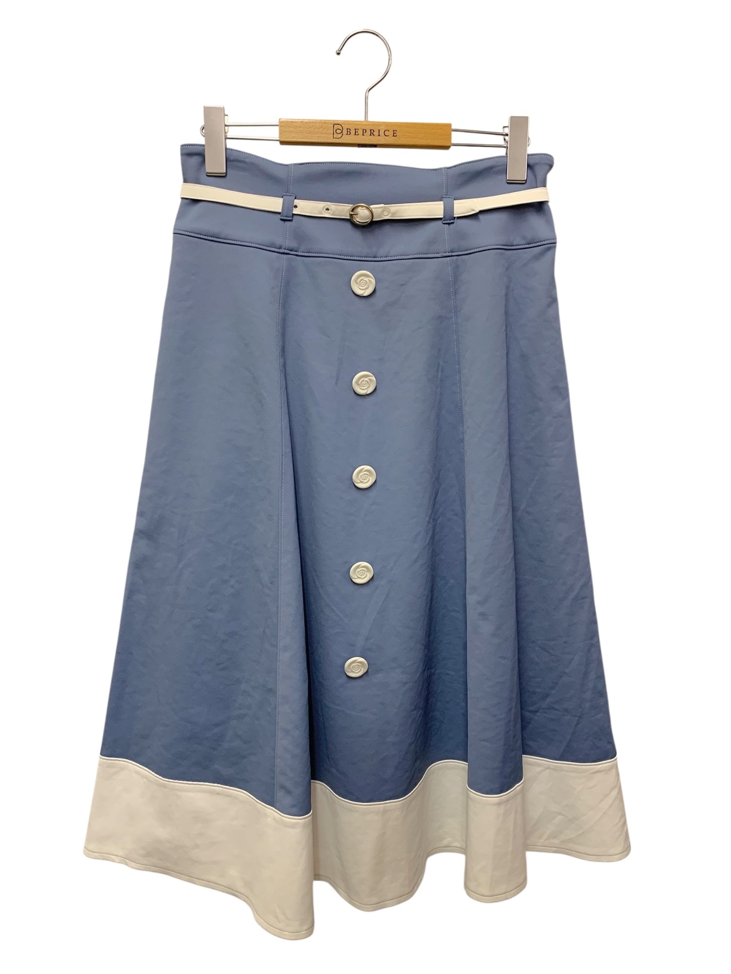 エムズグレイシー 417303 スカート 40 ブルー カメリアボタン バイカラー ITVCGW3OB1M2