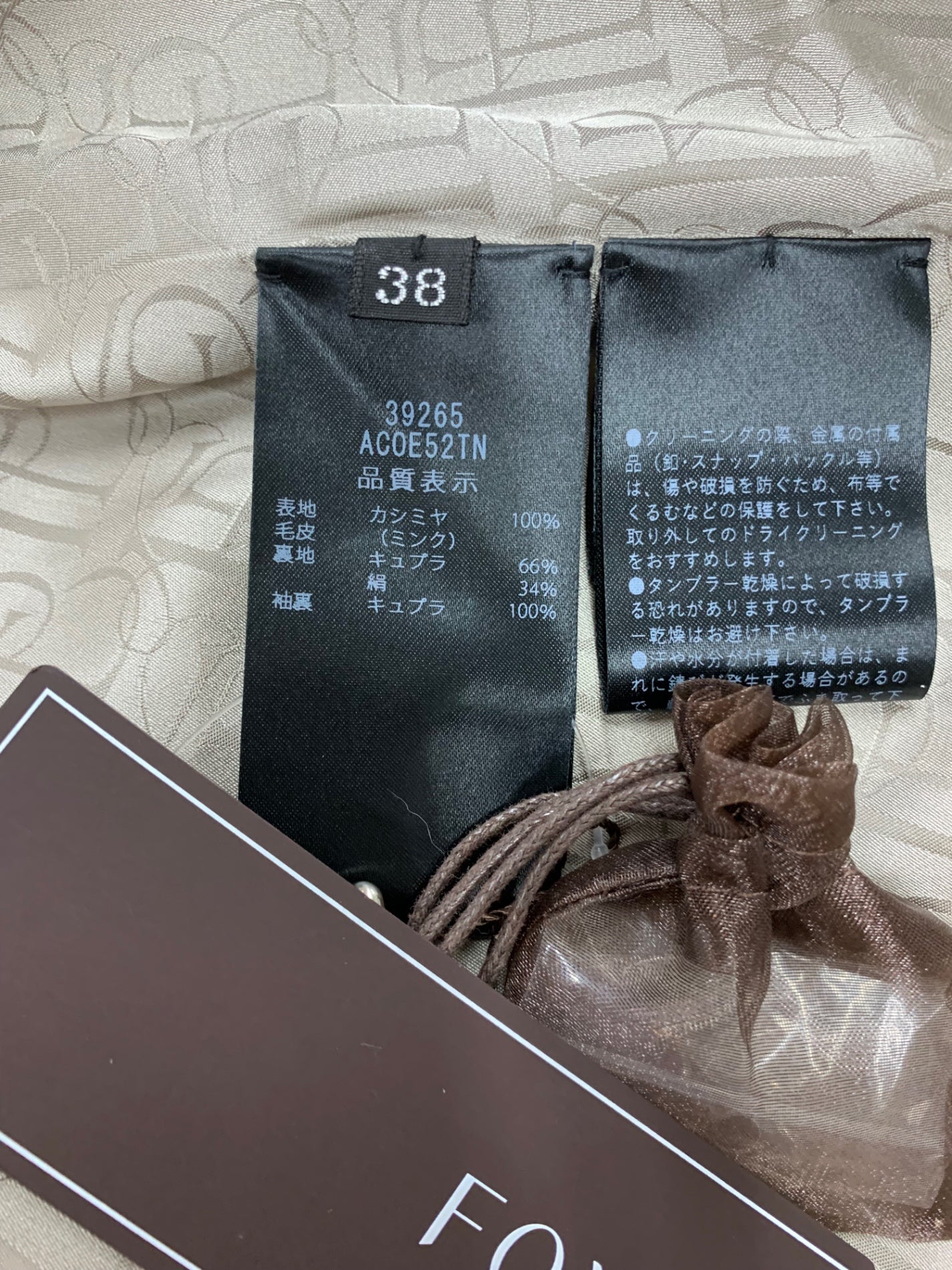 フォクシーブティック 39265 コート 38 ベージュ カシミヤ ミンクファー ITVT3ERRGVEO