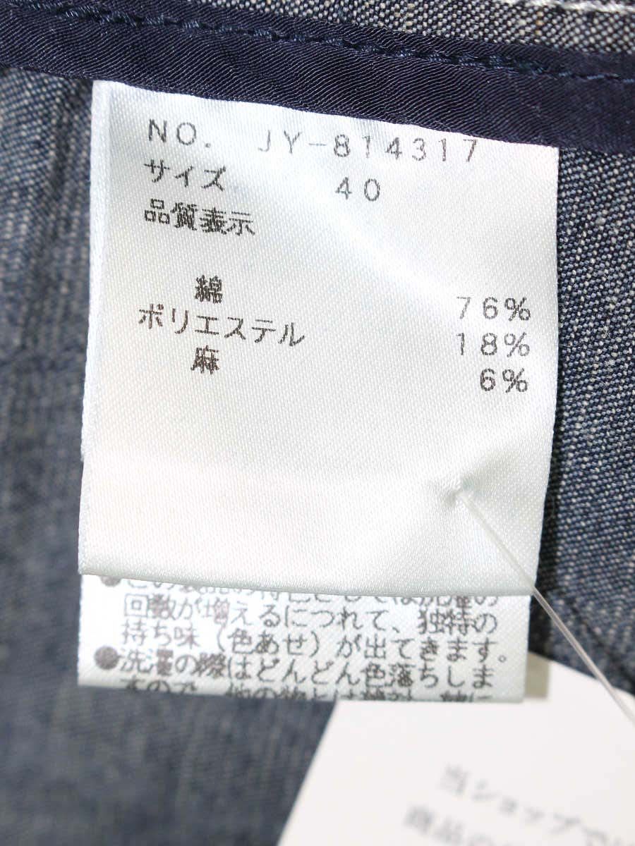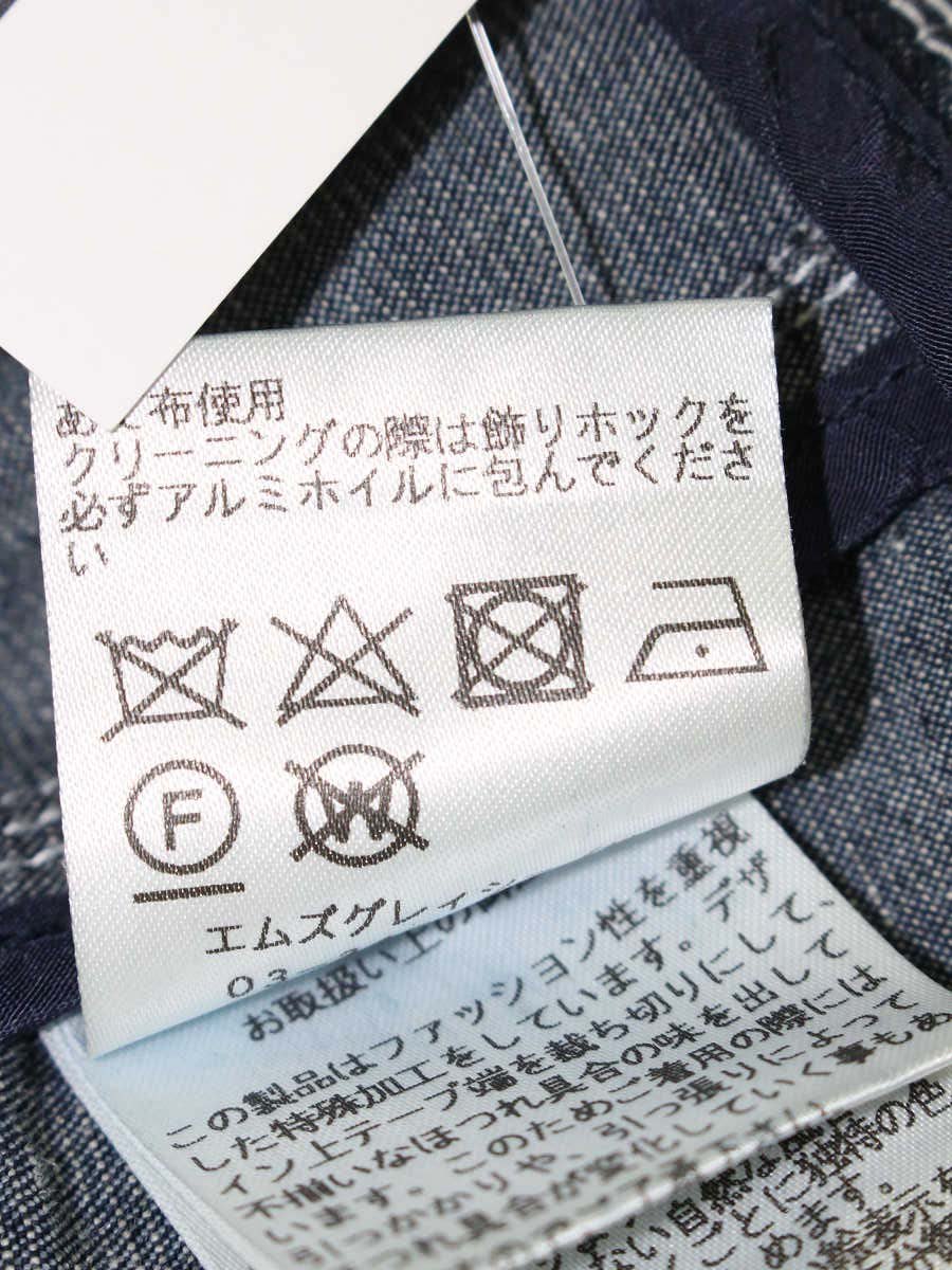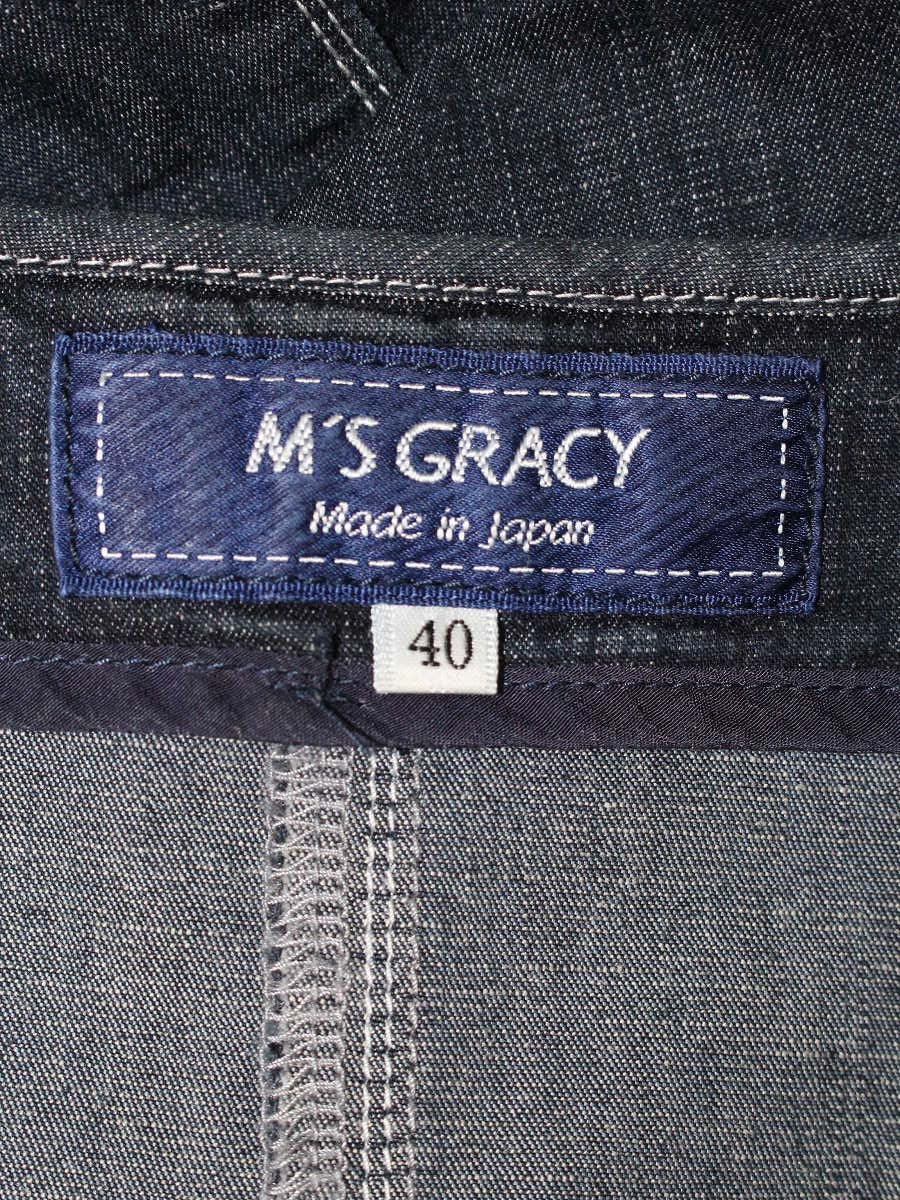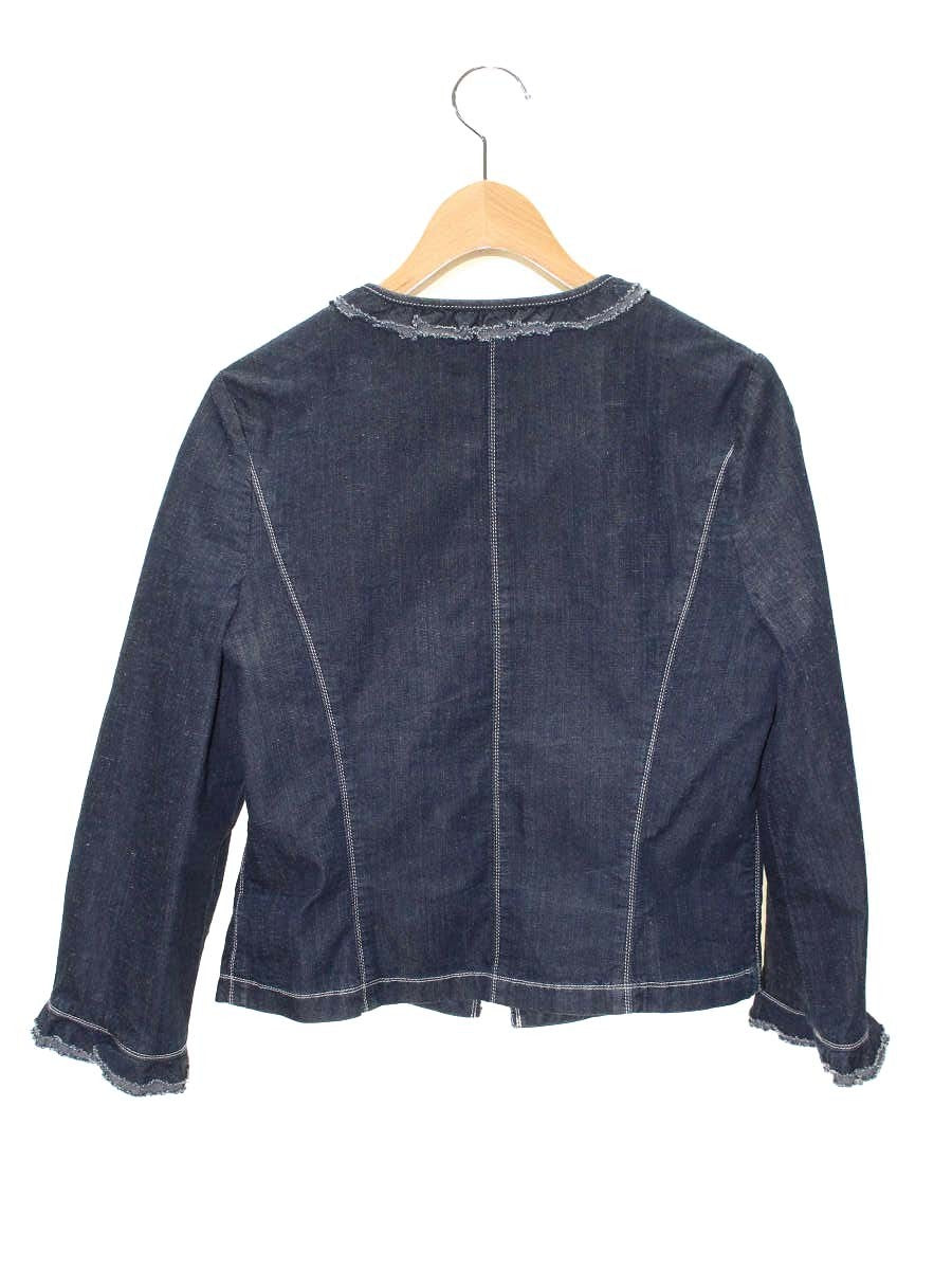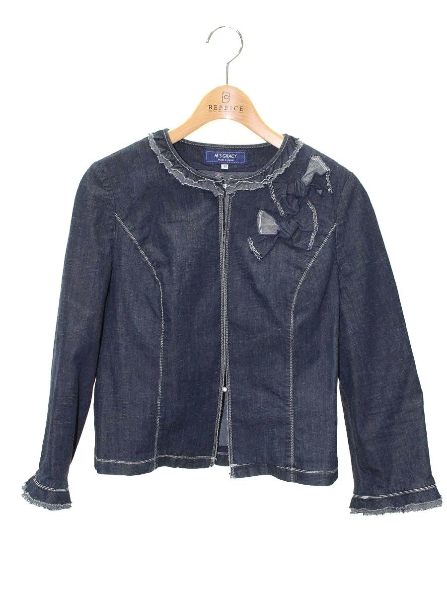 エムズグレイシー 814317 デニムジャケット 40 ネイビー ノーカラー フリル ビジュー ITVVT91XSCPW