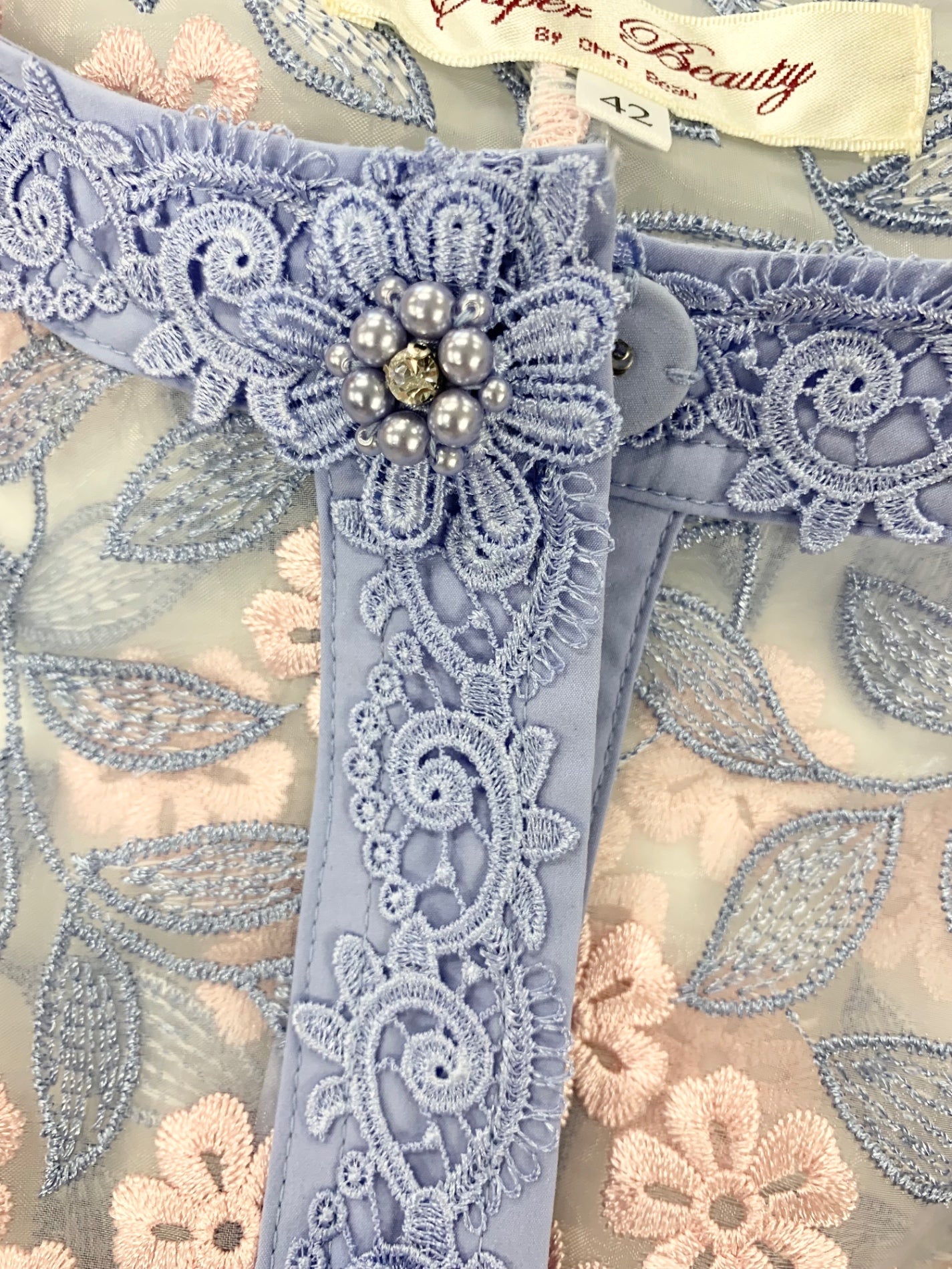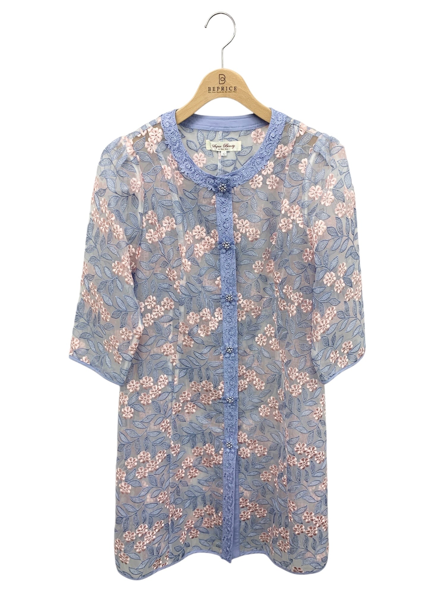 スーパービューティー ロングカーディガン 42 ブルー フラワーモチーフ レース ITW9WJV1JYDS