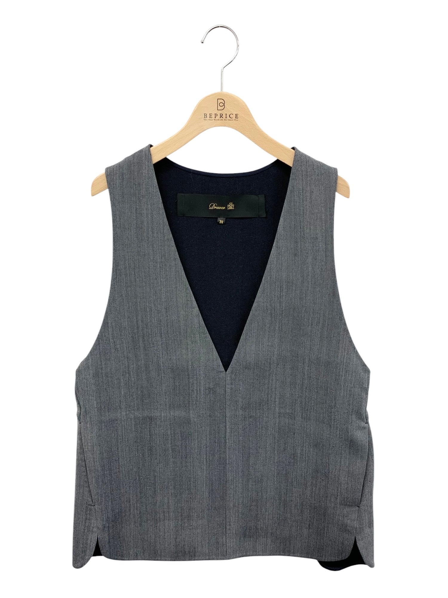 ドゥロワー FALL1 ヘリンボーンノースリーブVネックブラウス 6521-299-1248 ジレ 38 グレー ウール ヘリボーン ITWEN543BB1Q