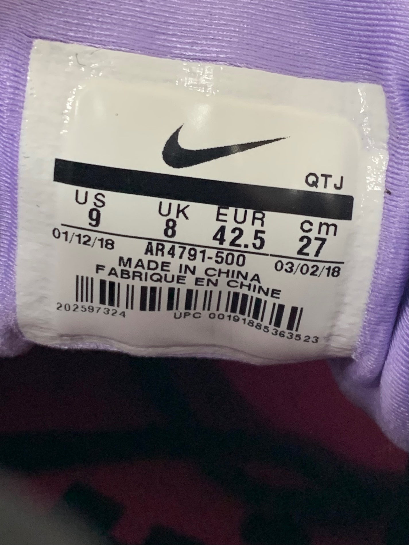 ナイキ エア ヴェイパーマックス プラス AR4791-500 スニーカー 9 パープル ITWNPXJWR2NK