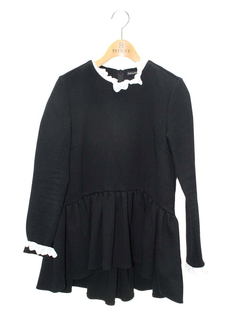 ツルバイマリコオイカワ 2218151 カットソー F ブラック ペプラム レース ITWUSE3EXI26