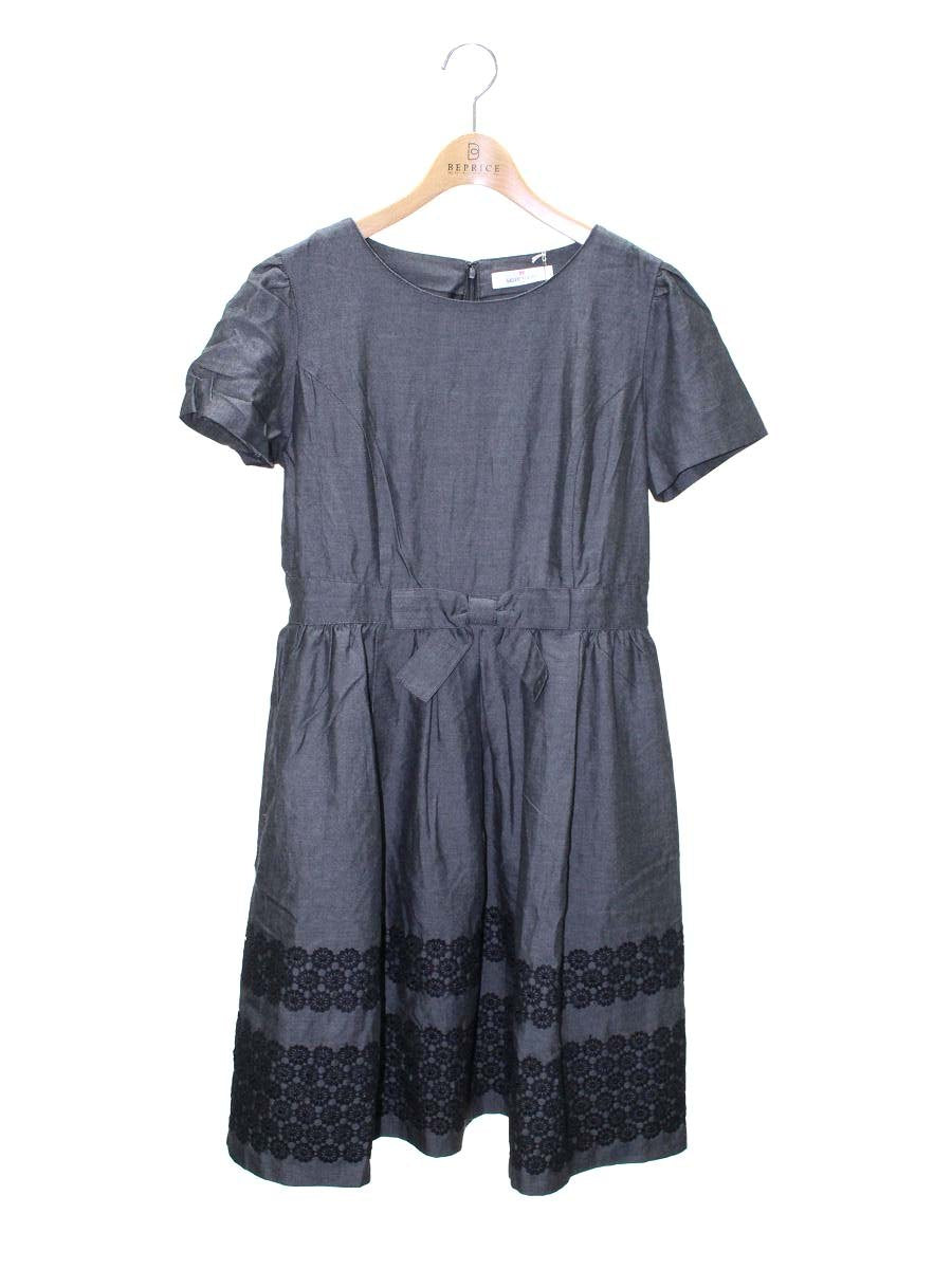 ギャラリービスコンティ 1228067 ワンピース 3 ブラック デニム リボン 花 刺繍 ITX1CD0S0IIO