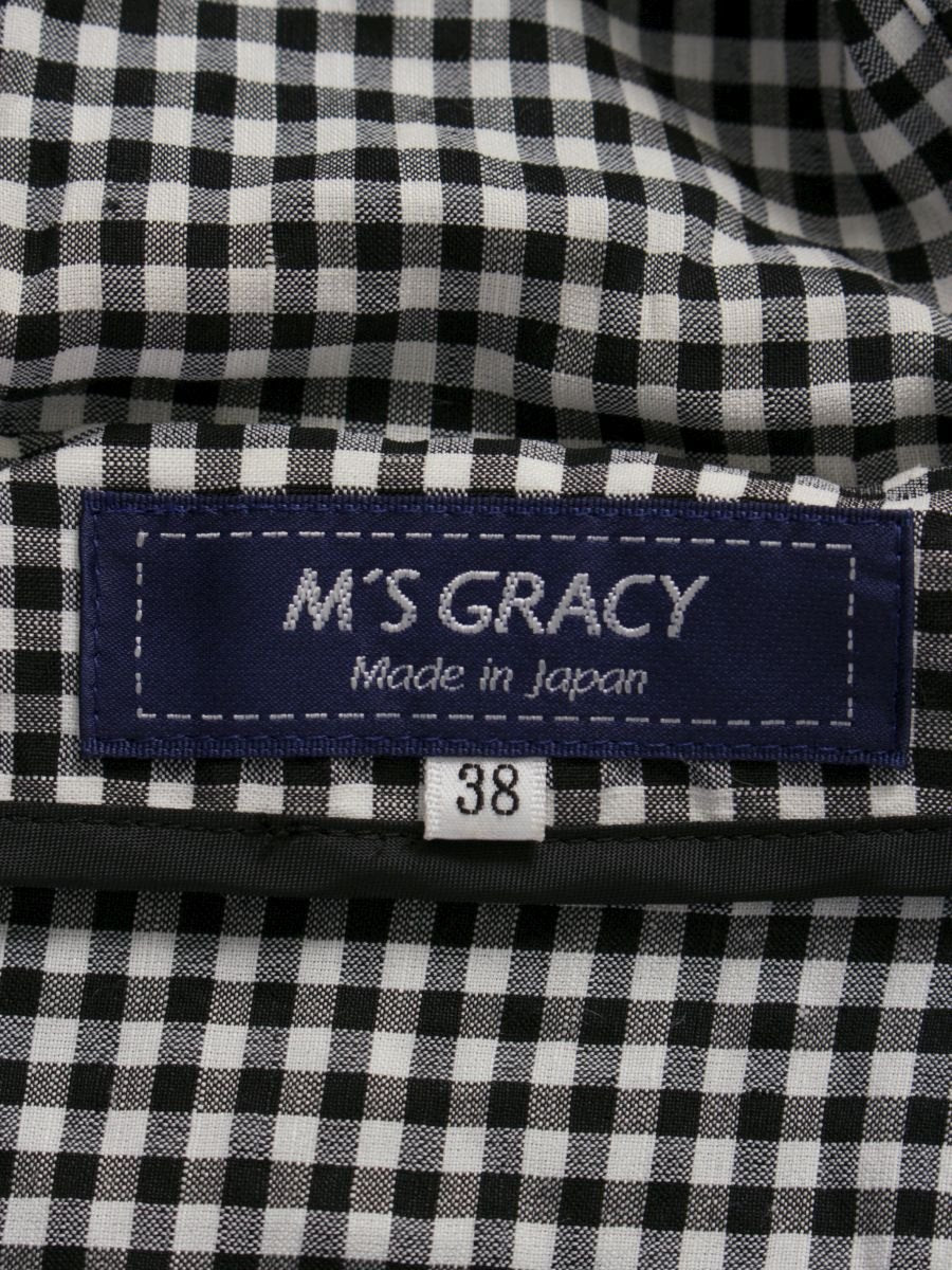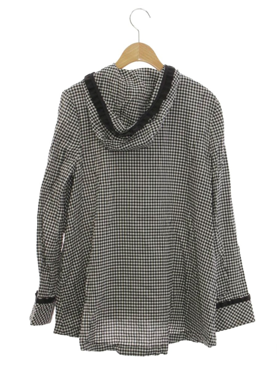 エムズグレイシー 019107 ジャケット 38 ブラック/ホワイト ギンガムチェック カメリアWジップ フード ITX7LUOBH9T2