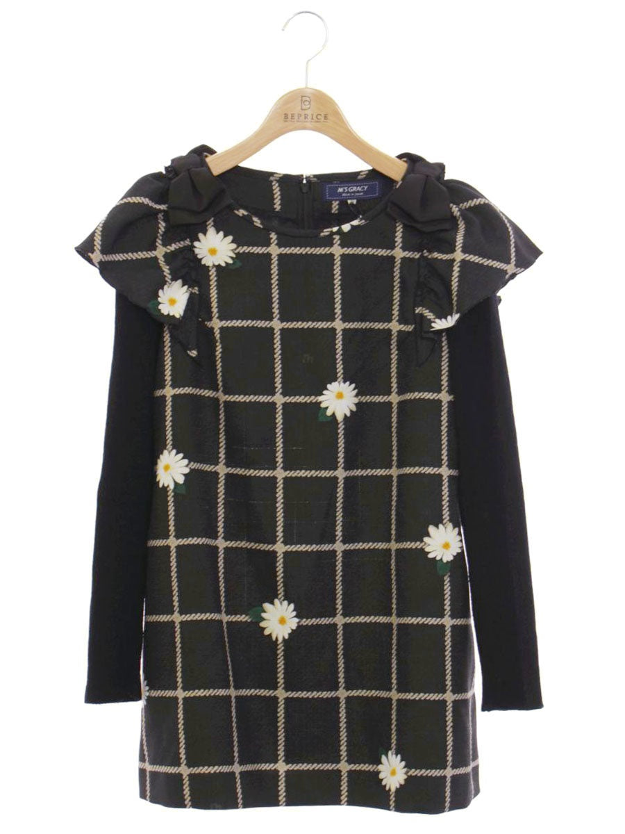 エムズグレイシー 010516 チュニック 40 ブラック チェックxデイジープリントチュニック ITXB6V7N9D5O