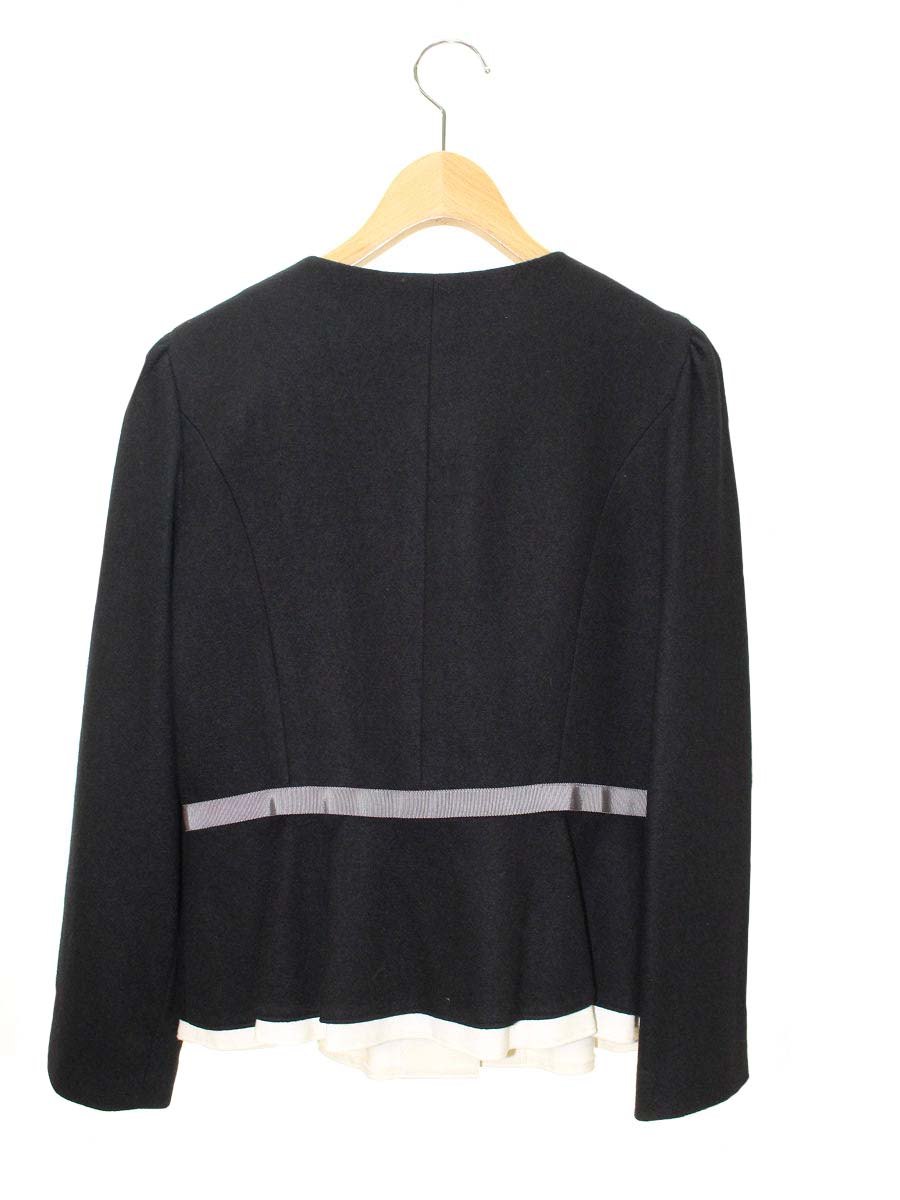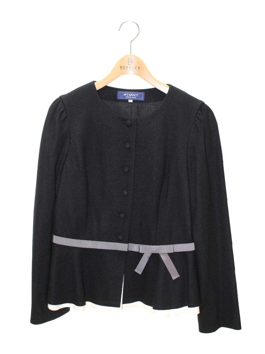 エムズグレイシー 814528 ジャケット 40 ブラック ノーカラー ウール リボン ITXCKTMDNUY4