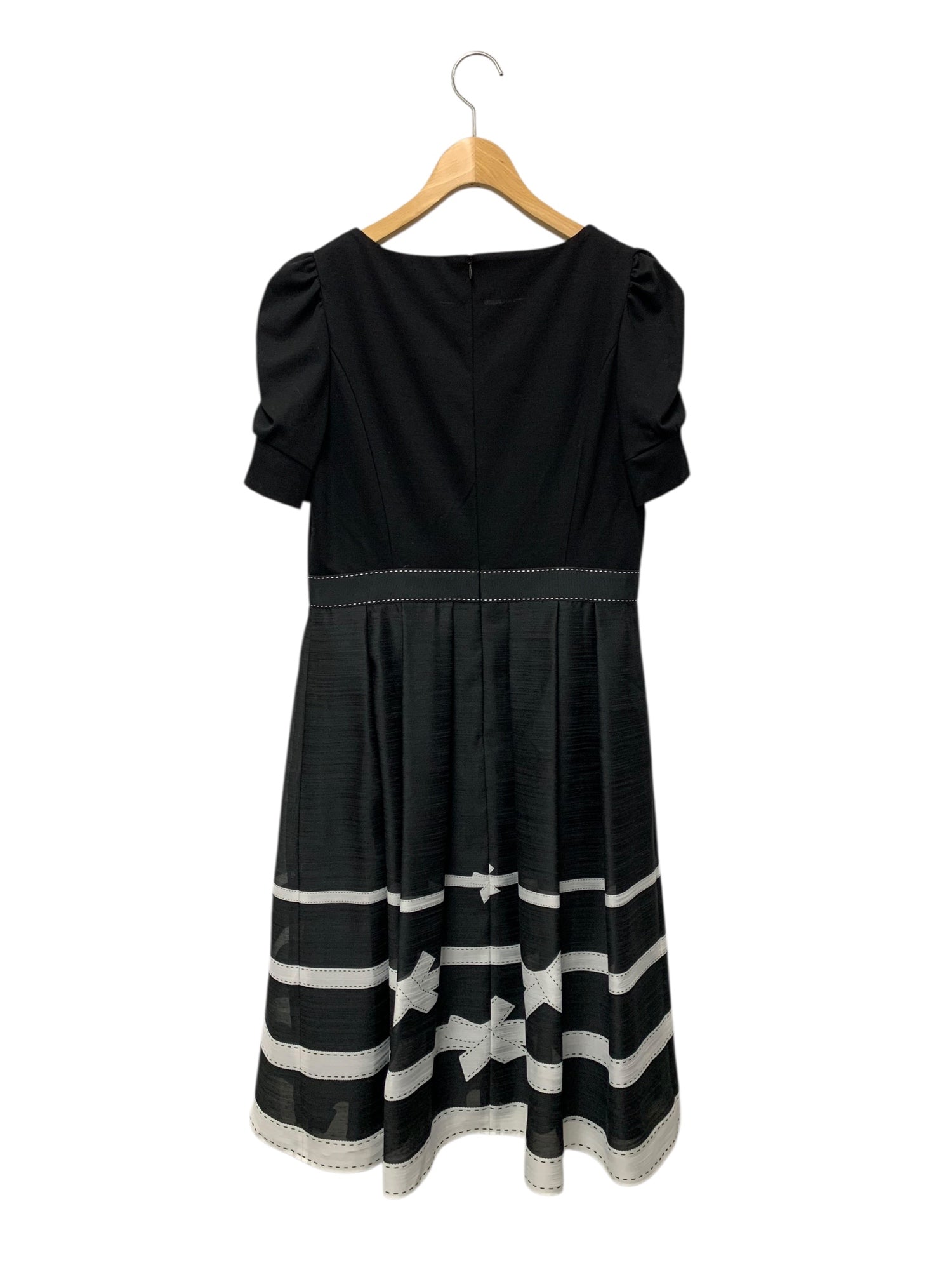 エムズグレイシー ボーダーリボンプリントワンピース 511330 ワンピース 40 ブラック リボン ステッチ ITXS2SP6B3J8