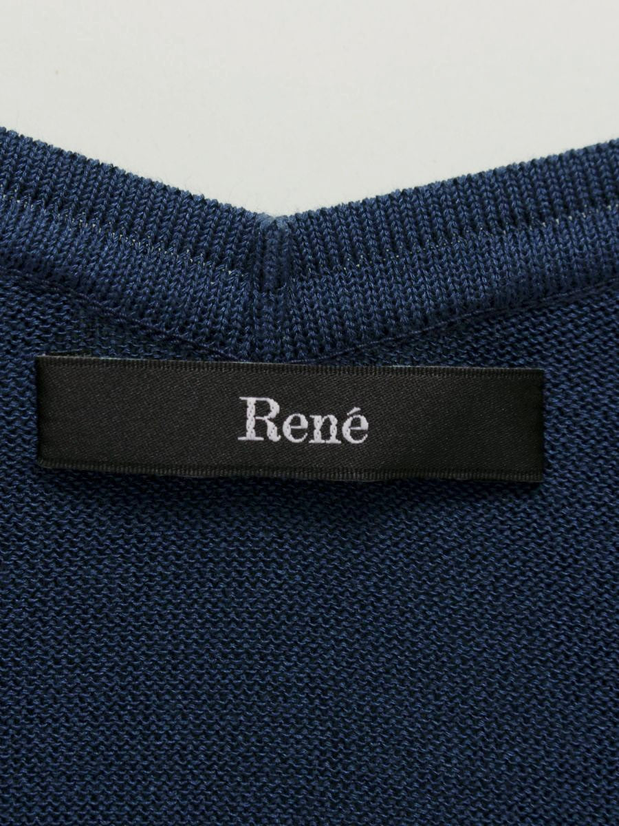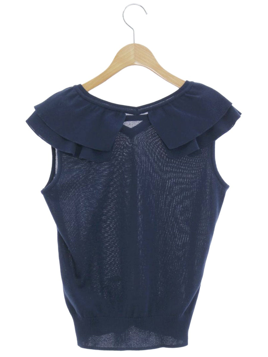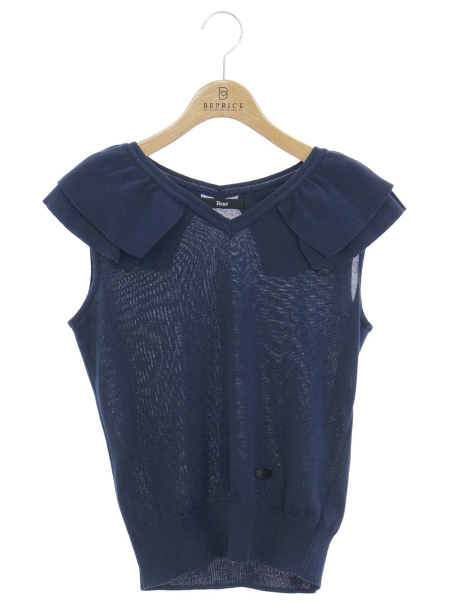 ルネ 5332031 ノースリーブニット 34 ネイビー フリル Vネック ITXXCI795YJK