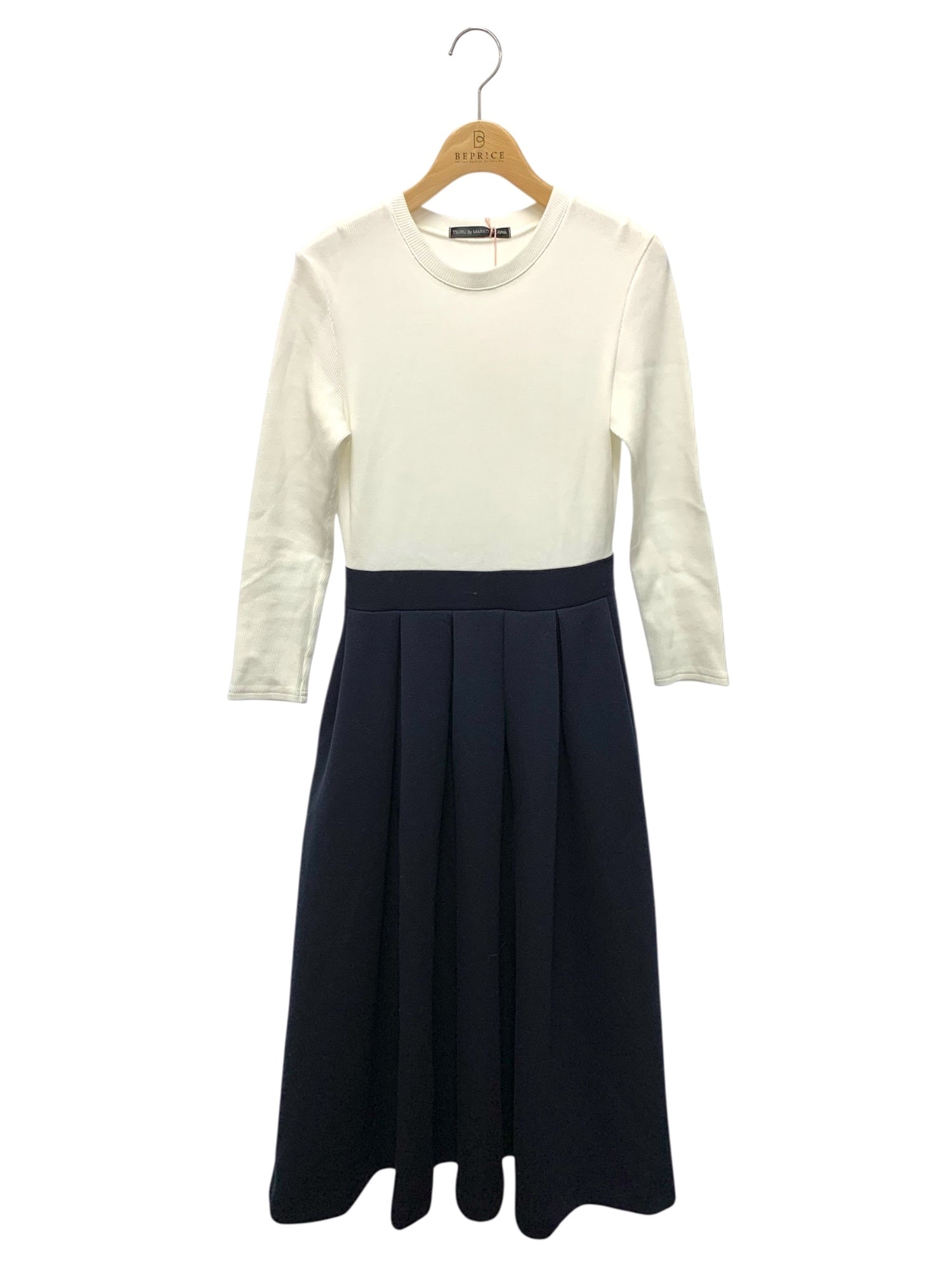 ツルバイマリコオイカワ 2230530 ワンピース 34 ネイビー 切替 ニット タックフレア ITXY6ZSU35U0 【SALE】