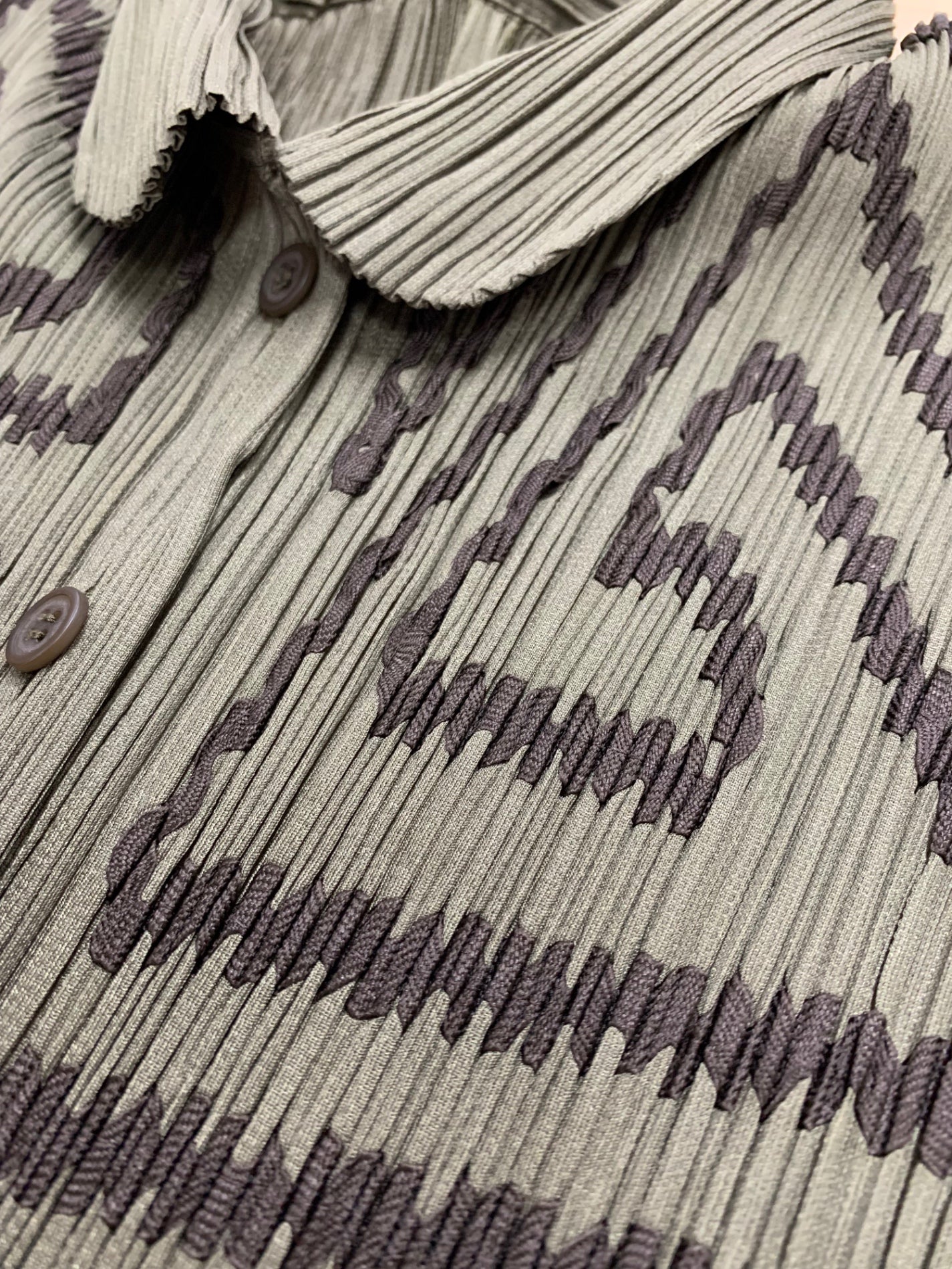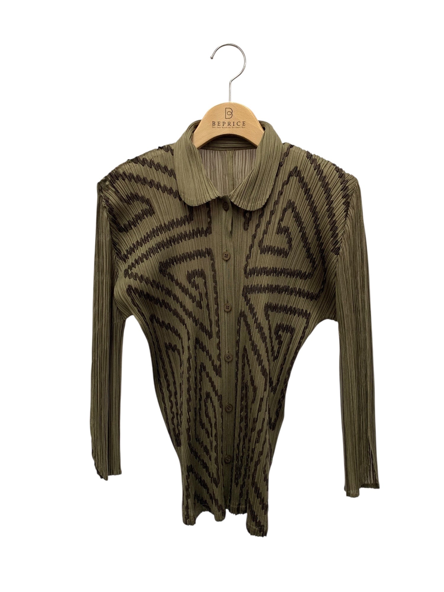 プリーツプリーズイッセイミヤケ PP41-JJ745 ブラウス 3 カーキグリーン プリーツ 丸襟 ITYOSQLGFBOS